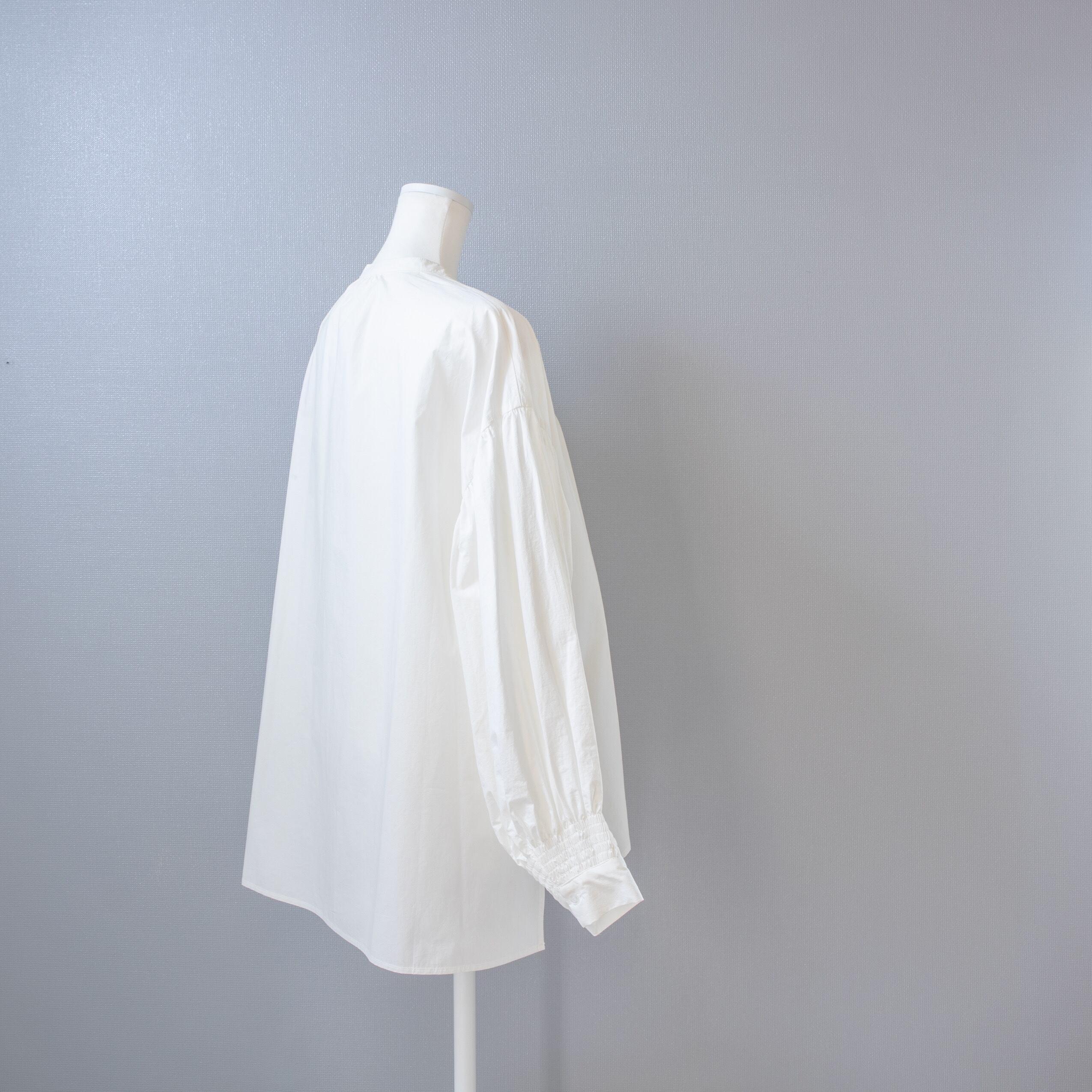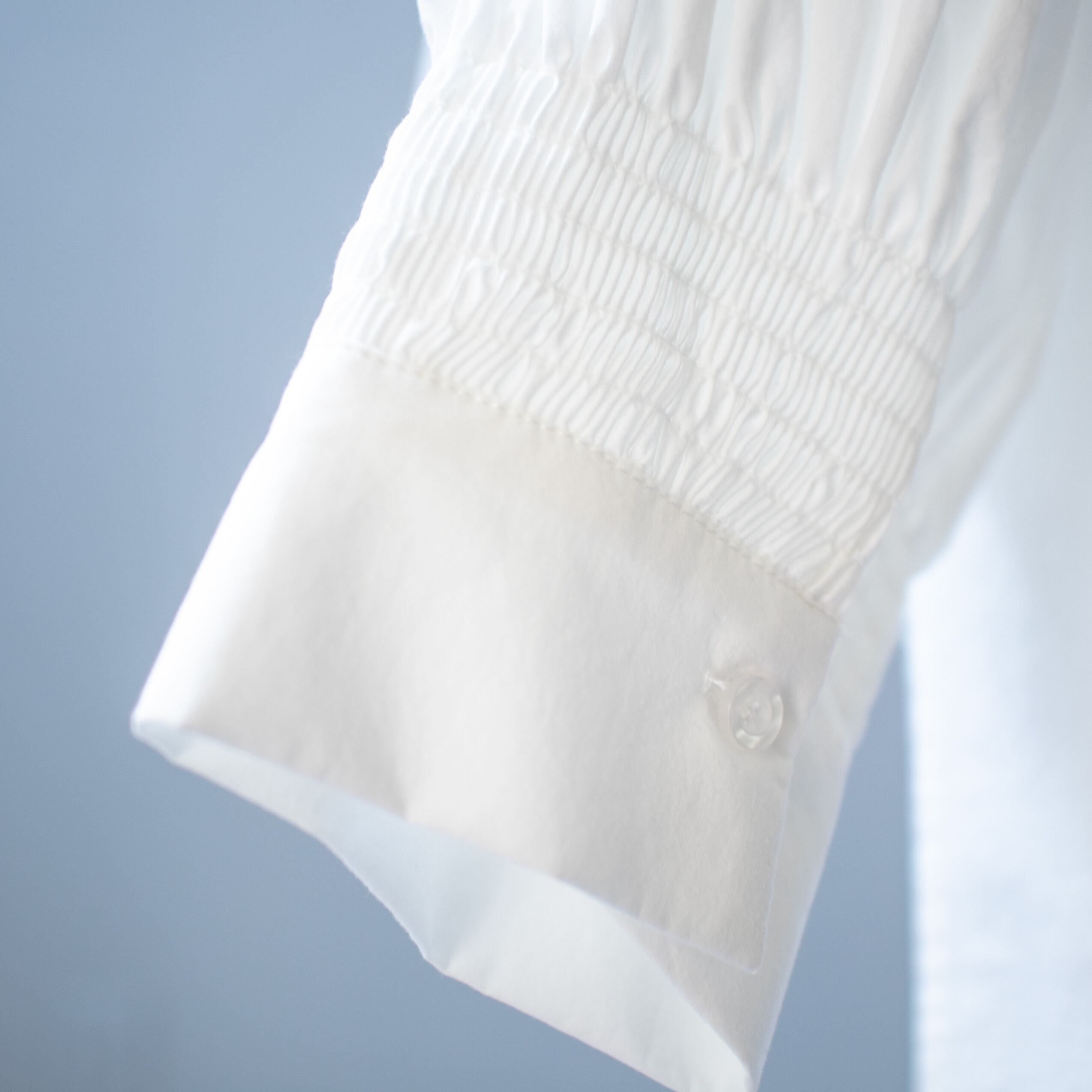 袖口には繊細なシャーリング加工を施し立体感と柔らかな動きをプラス。