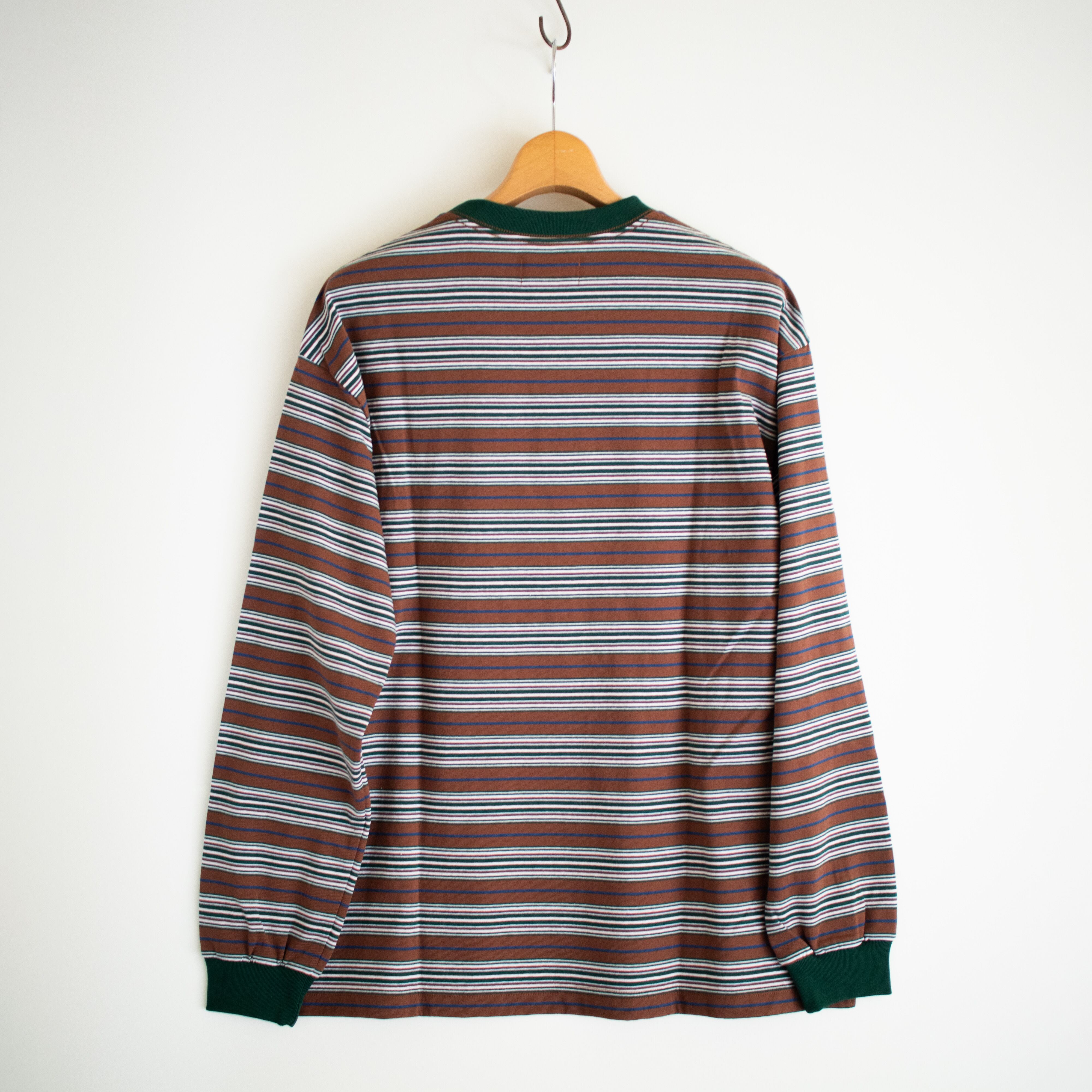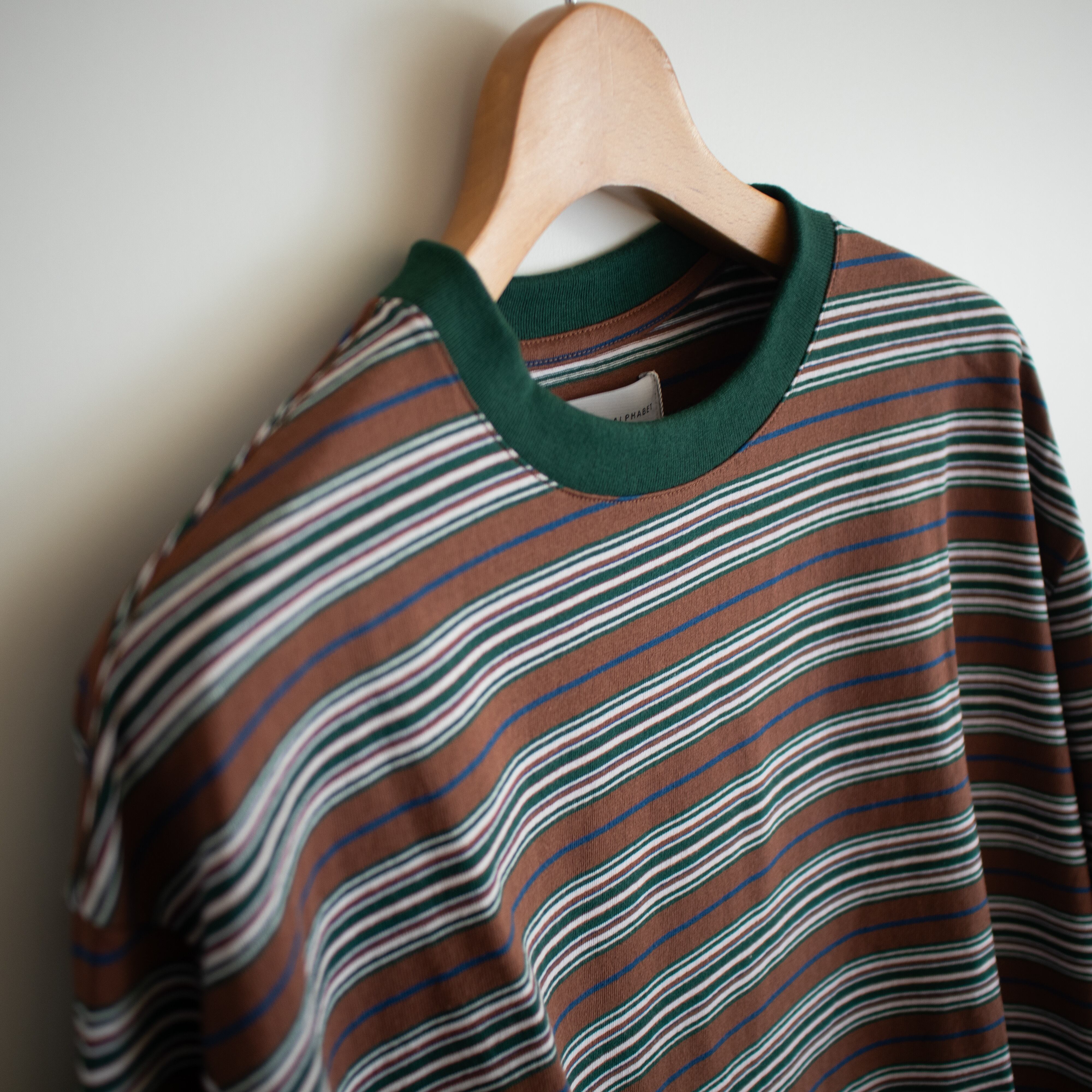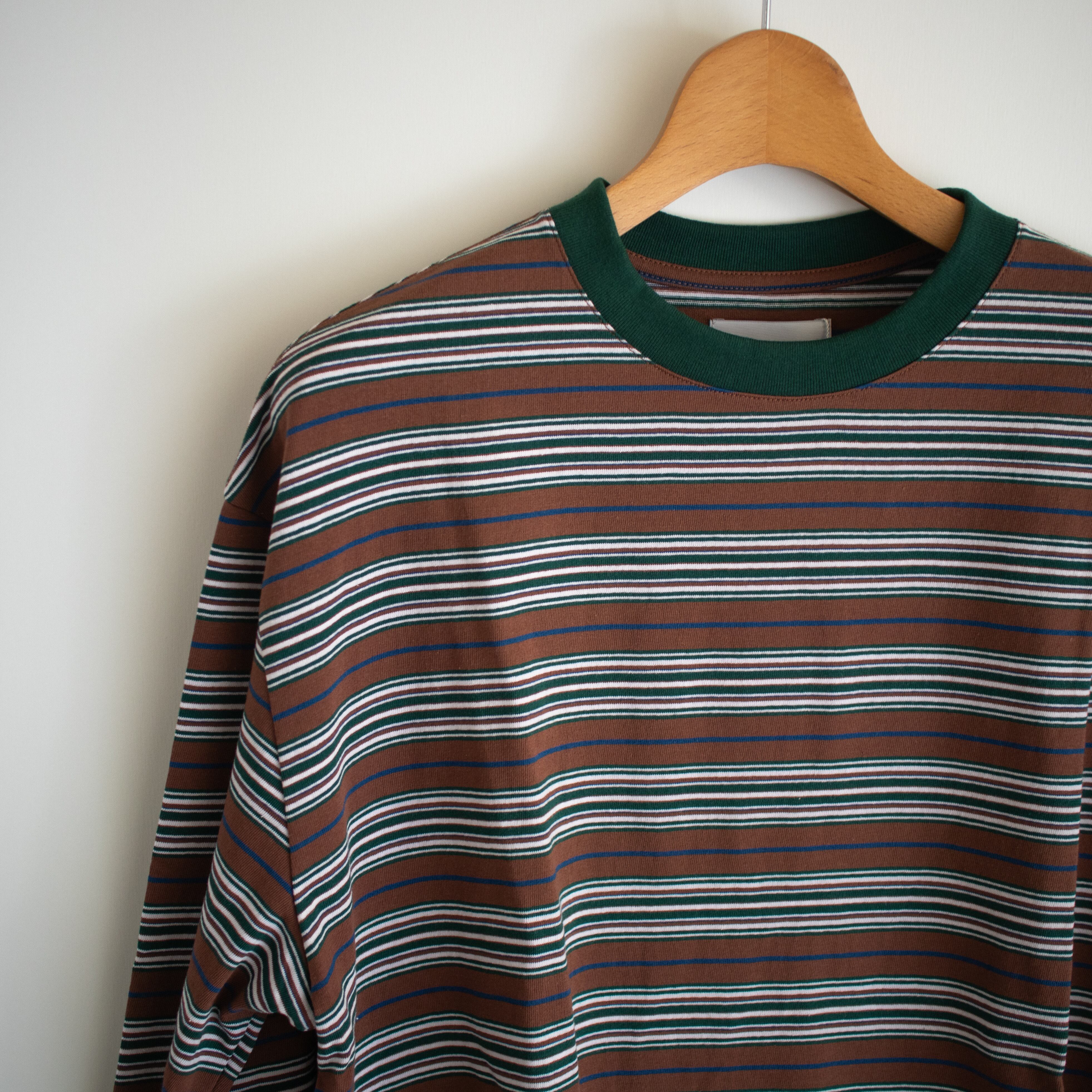 鮮やかな配色が特徴的なゆったりとしたアメリカ綿天竺を使用した長袖のマルチボーダーTEE。