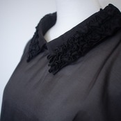 襟部分には同素材のフリルをあしらいガーリーな印象に。