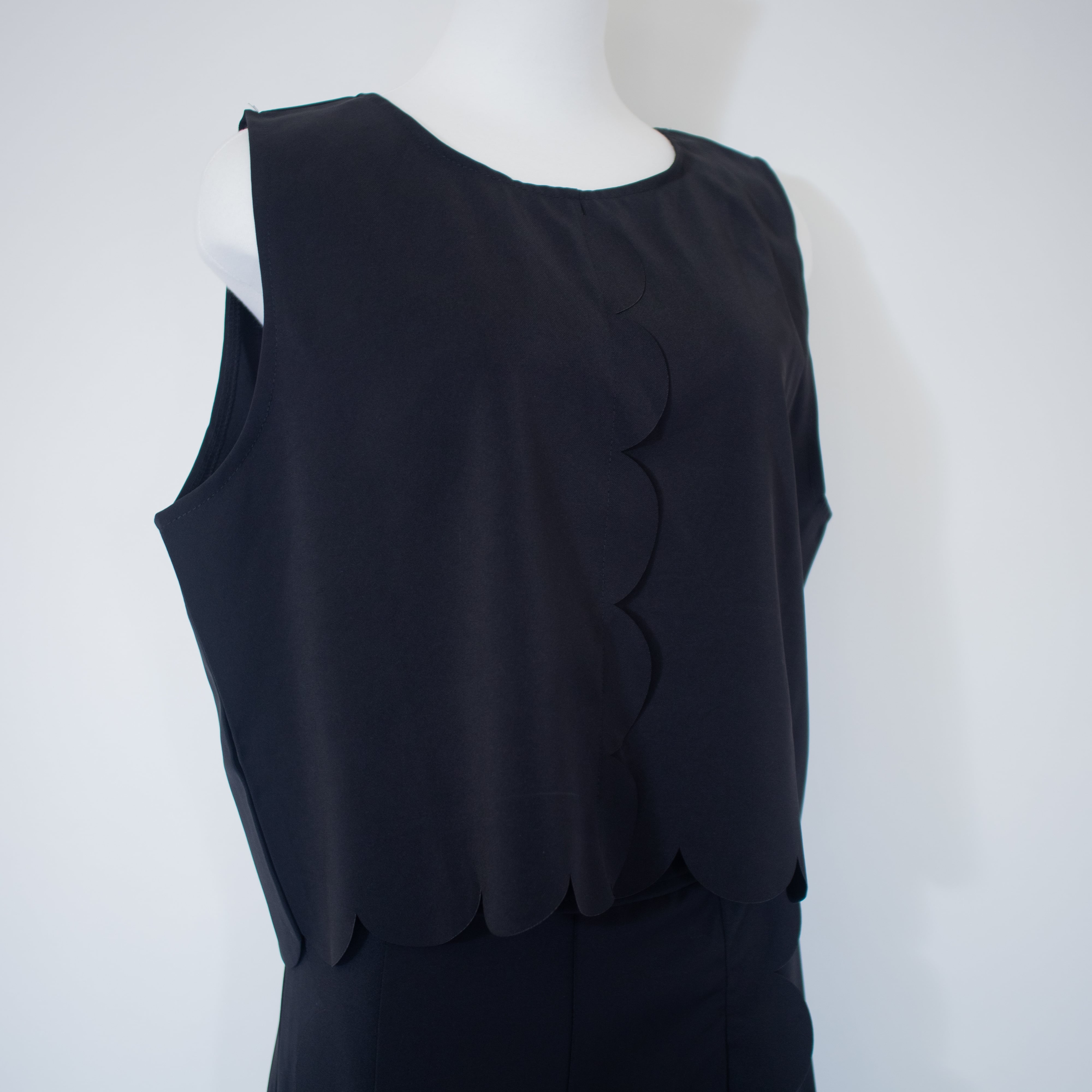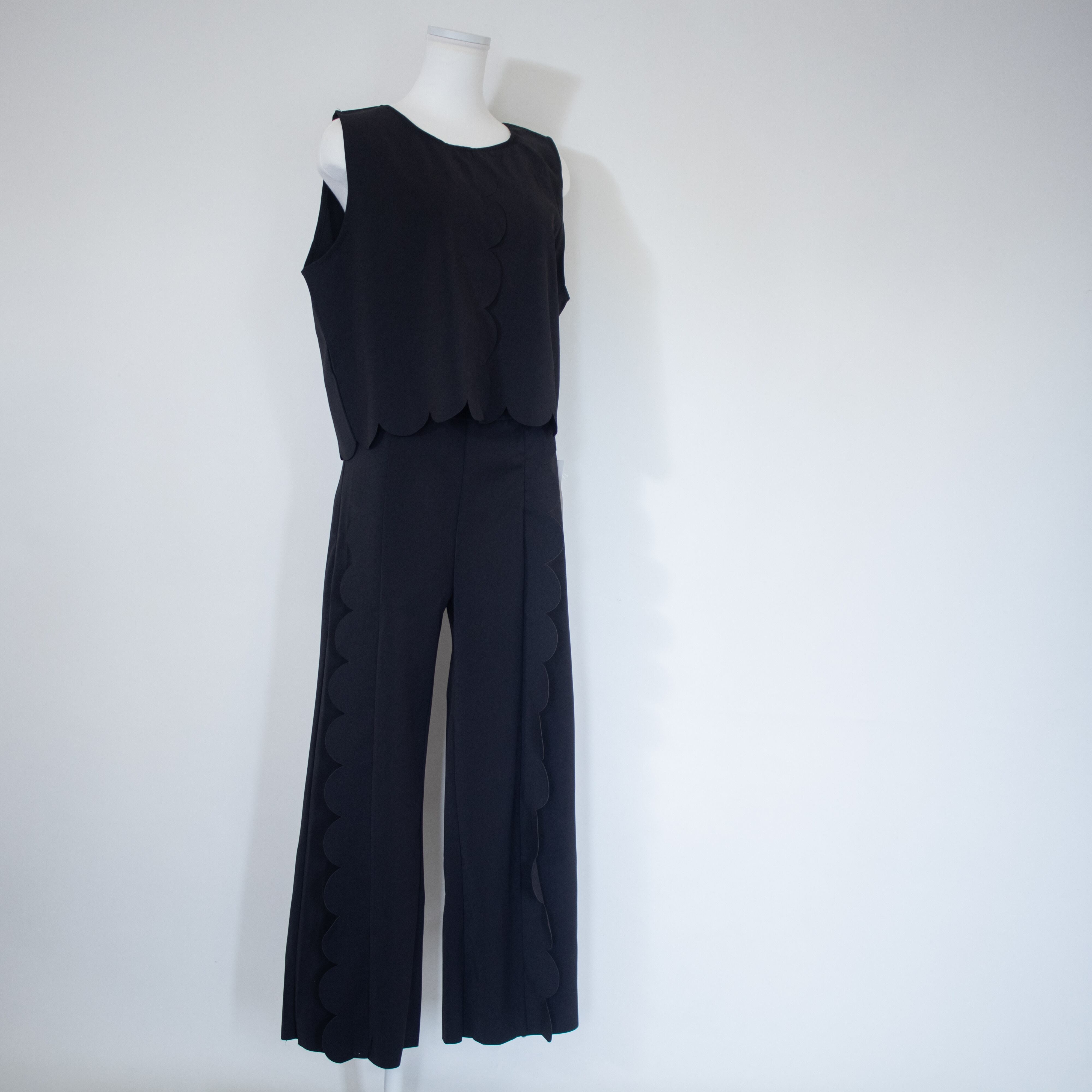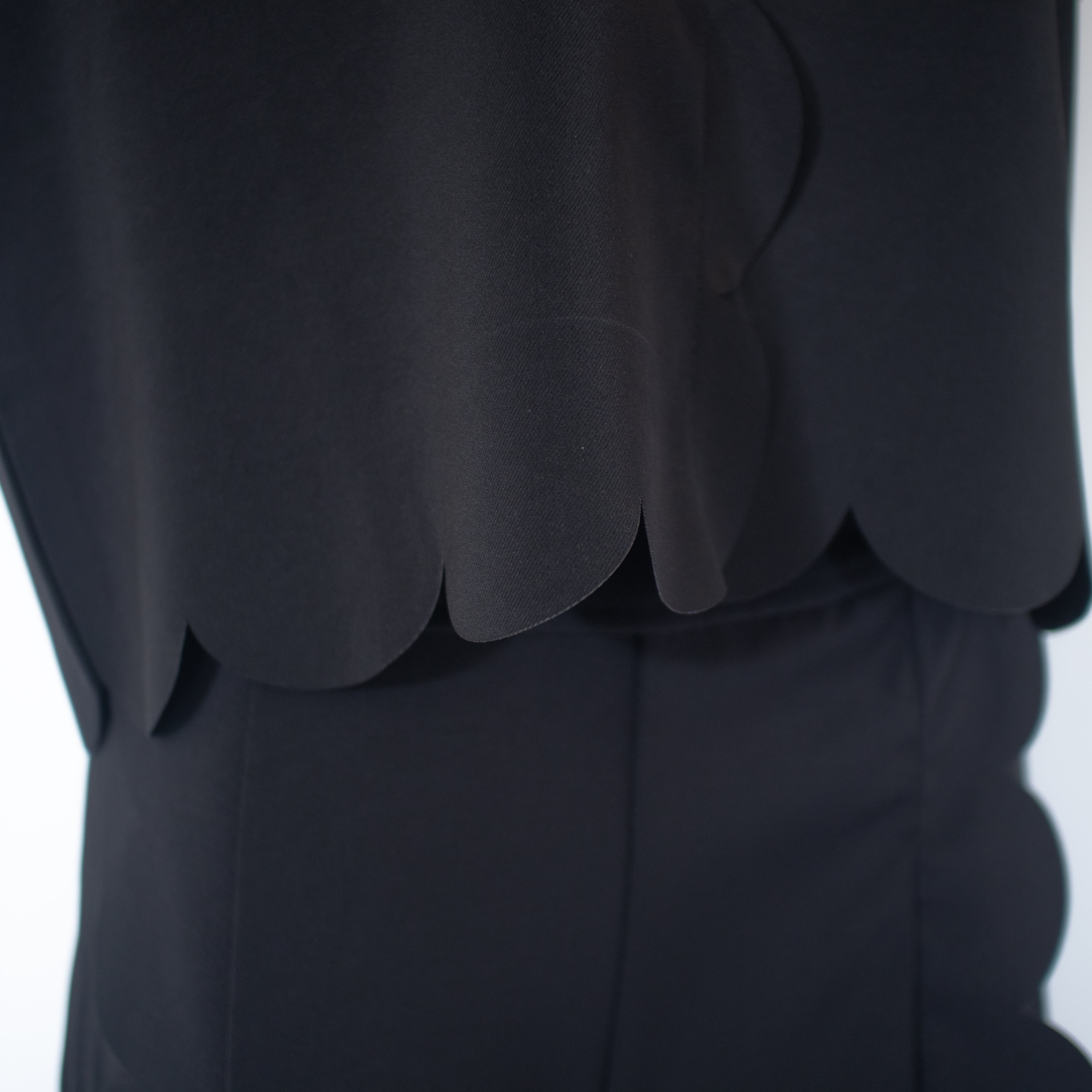 トップスは裾のスカラップカットが女性らしさを演出し、