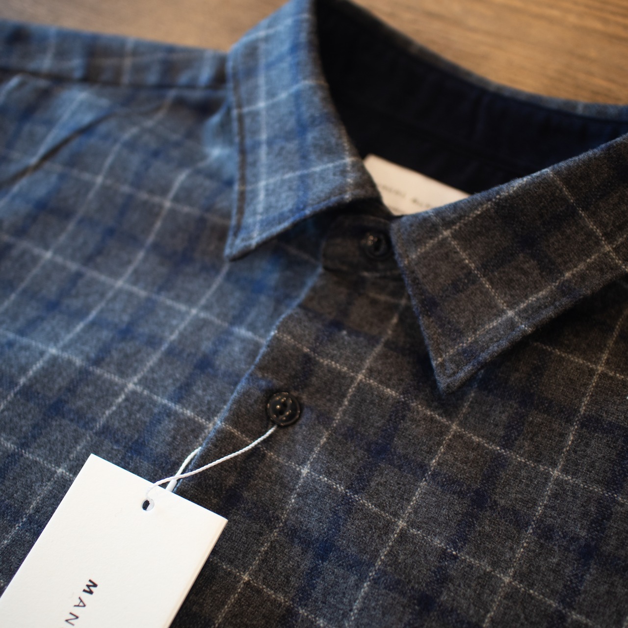 定番&人気の尾州ウール 90% 、ナイロン 10% の素材を使用したルーズフィットシャツ。
