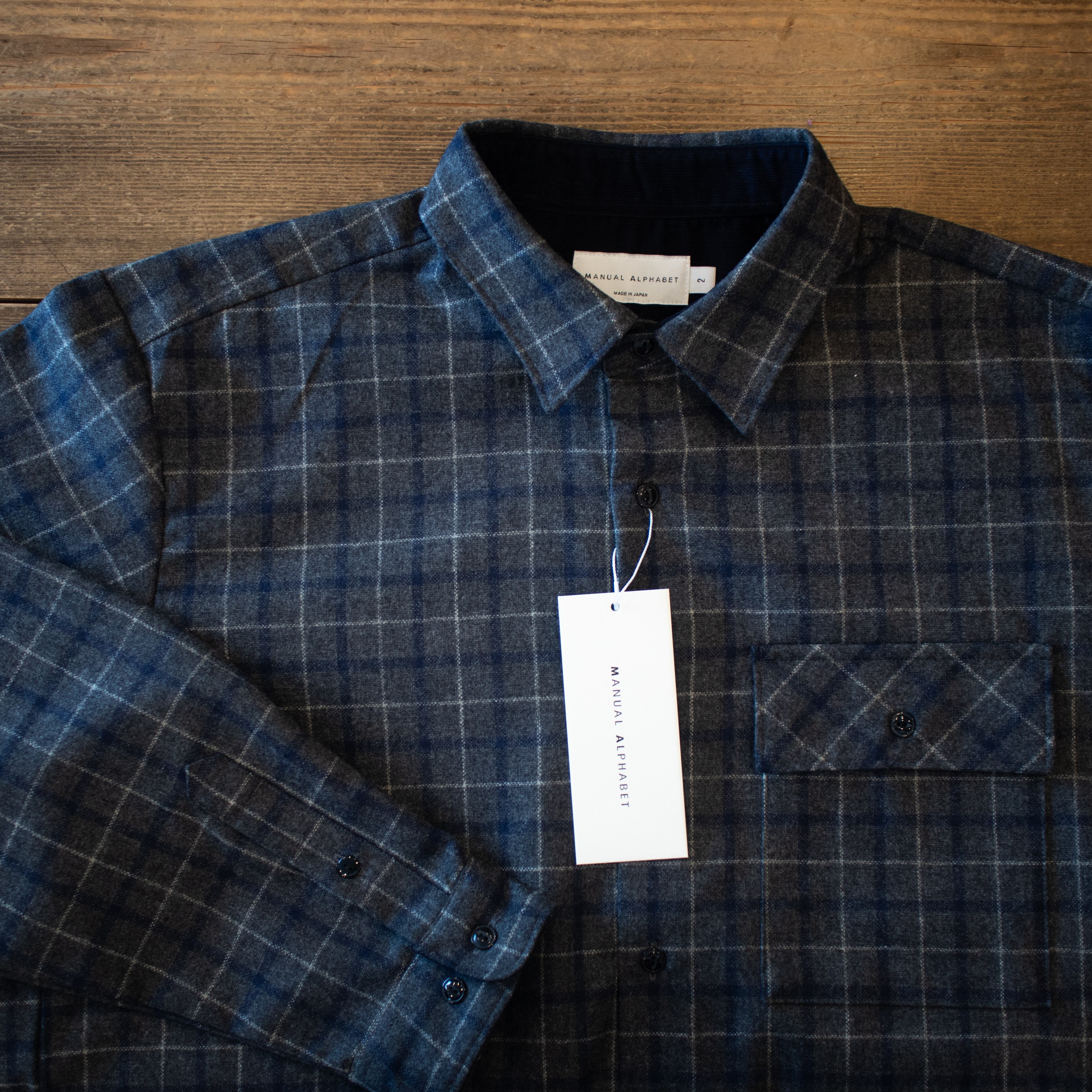 MENS MANUAL ALPHABET ウールルーズフィットレギュラーカラーシャツ