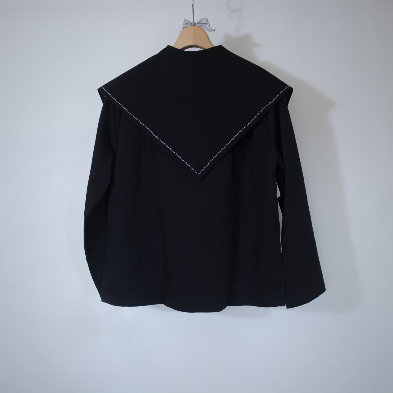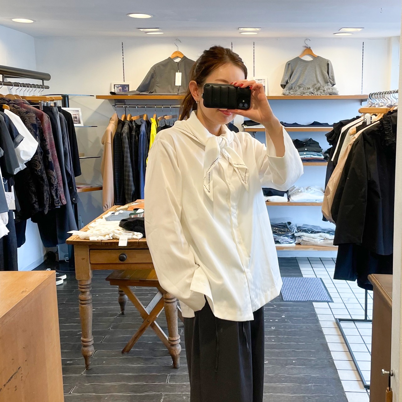 存在感のある大きなカラーは、そのまま垂らしても、リボンのように結んでも表情が変わり、着こなしの幅を広げてくれます。