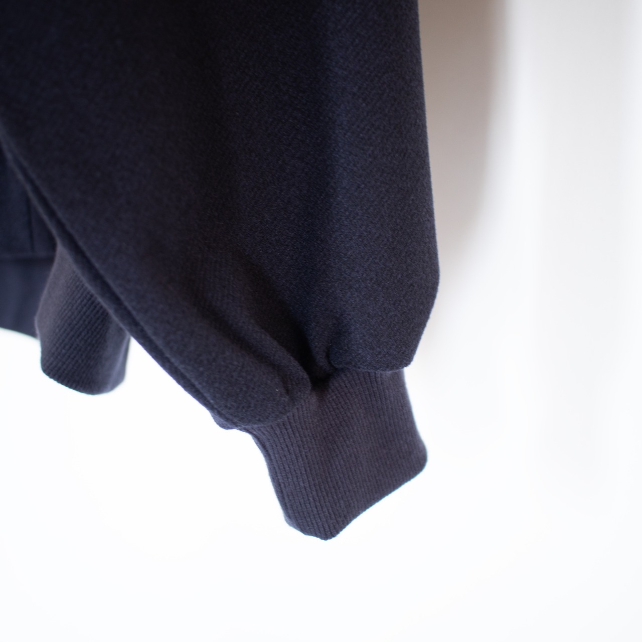 ニードルパンチで起毛感と布帛っぽい硬さと伸縮を抑えた加工を施しています。ポリエステル素材ですのでウールのようにチクチクする事もなく、水洗いで大きく縮む事もありません。またカットソー素材ですので、軽くてリラックスした快適な着心地になります。
