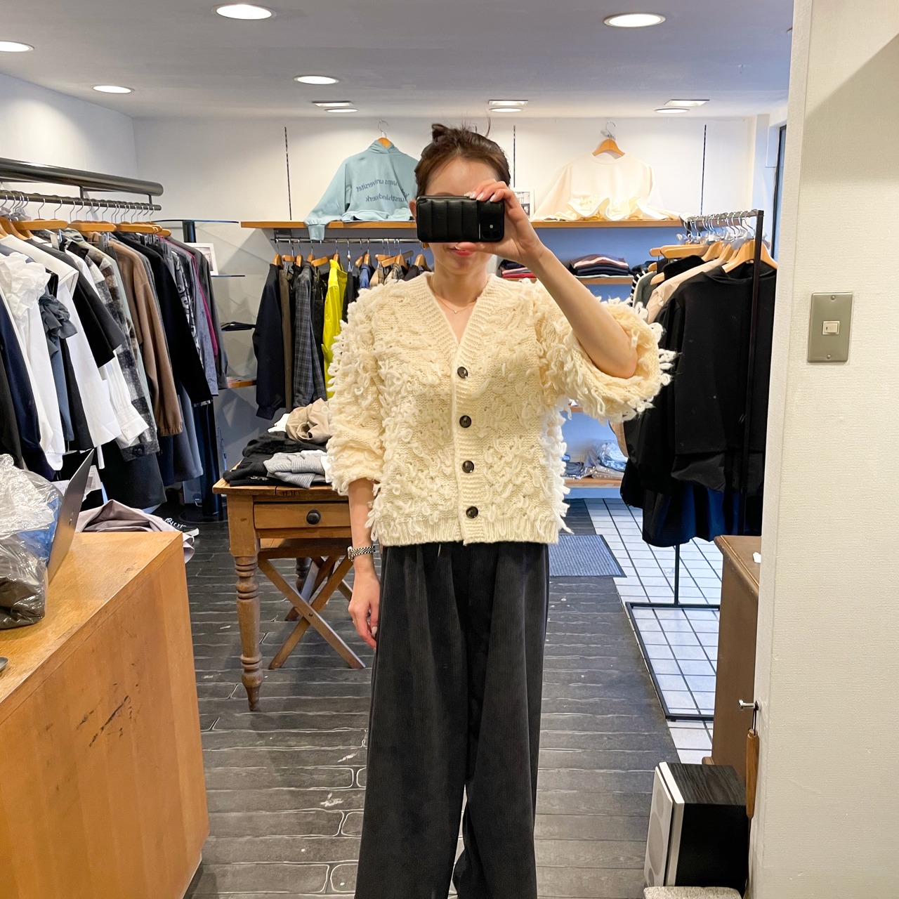 vネック&クロップド丈にすることで重くなり過ぎず、着膨れする心配もなし♪