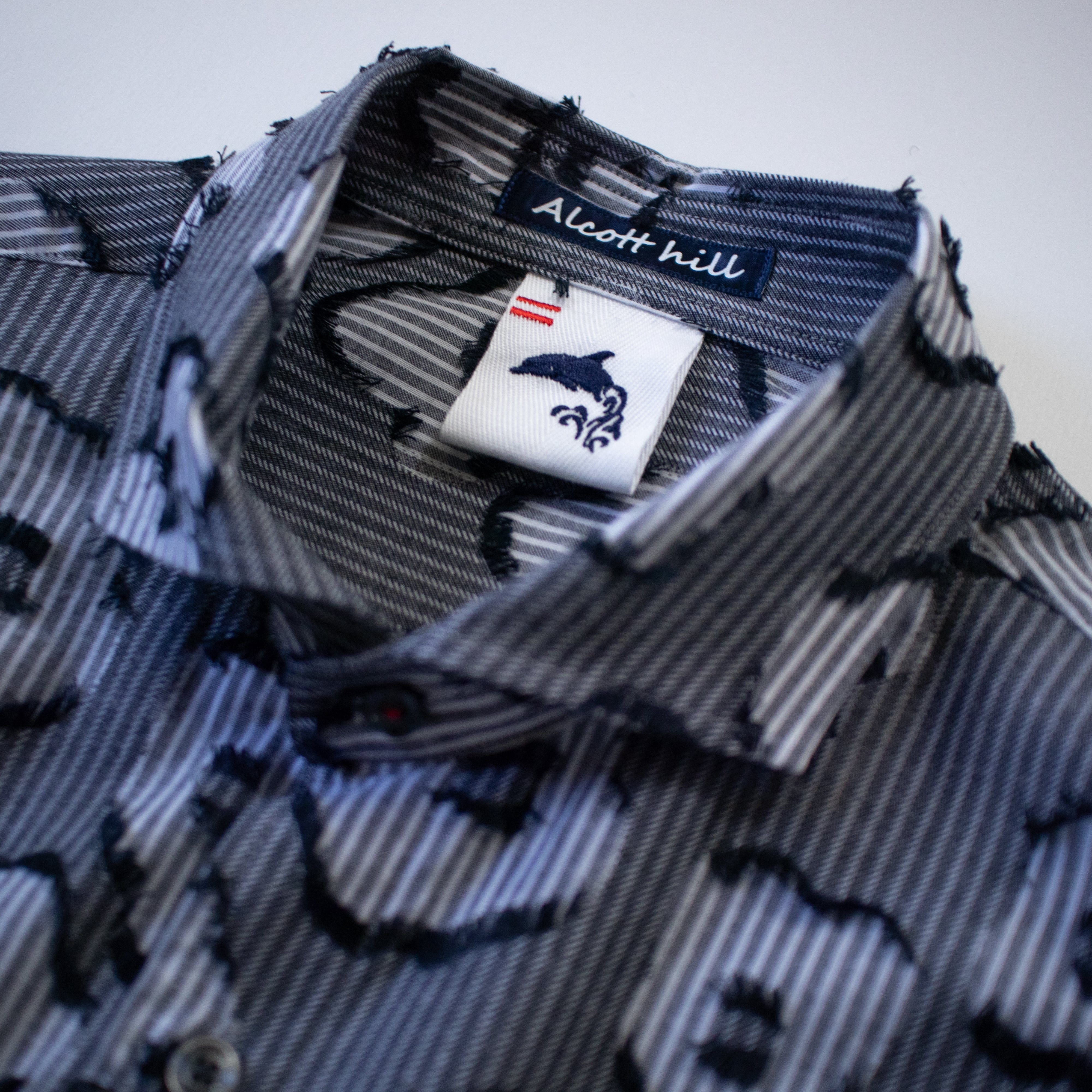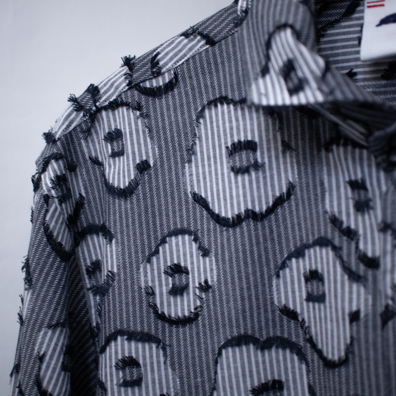 ベースのストライプ生地に花柄の立体感が魅力的なジャガードシャツです。