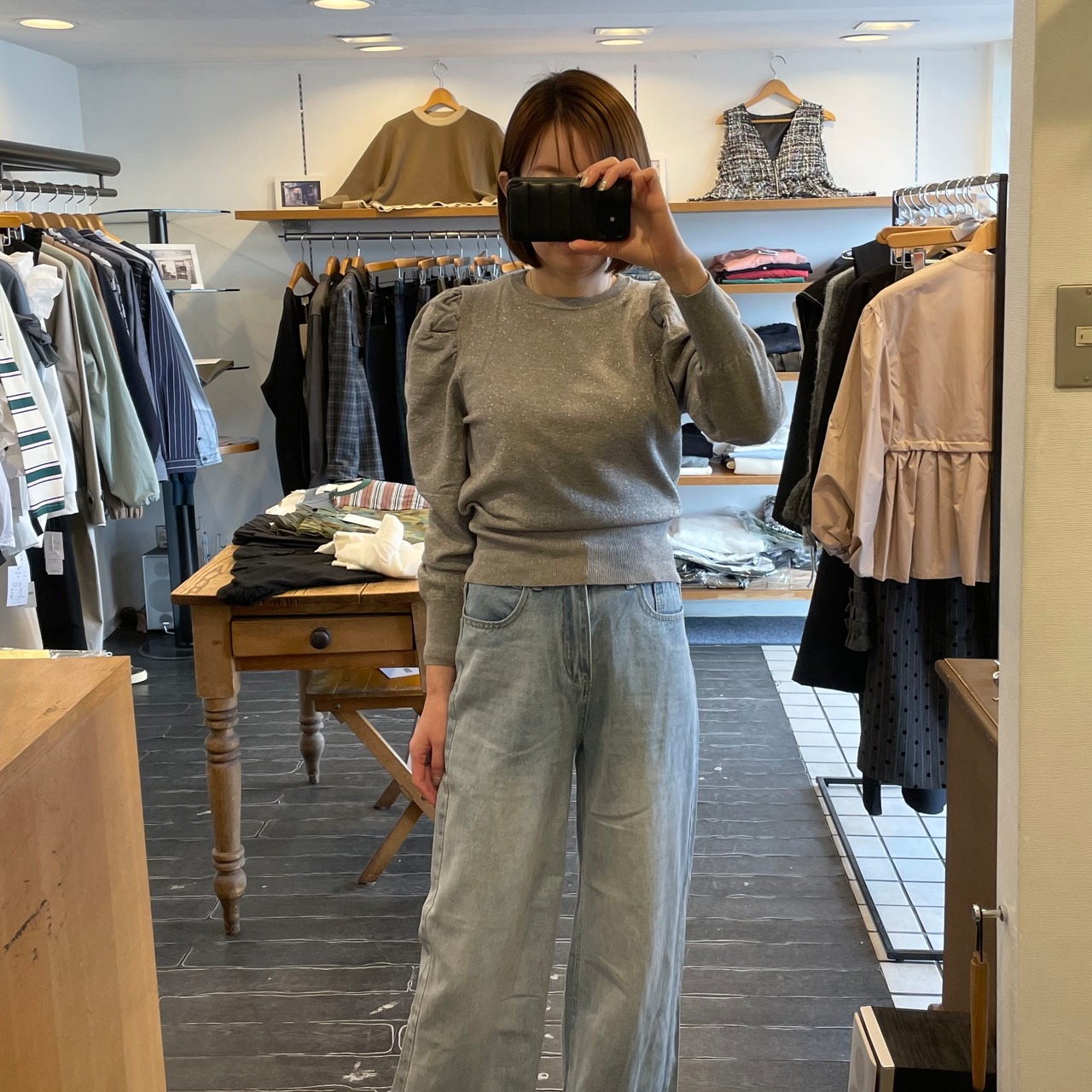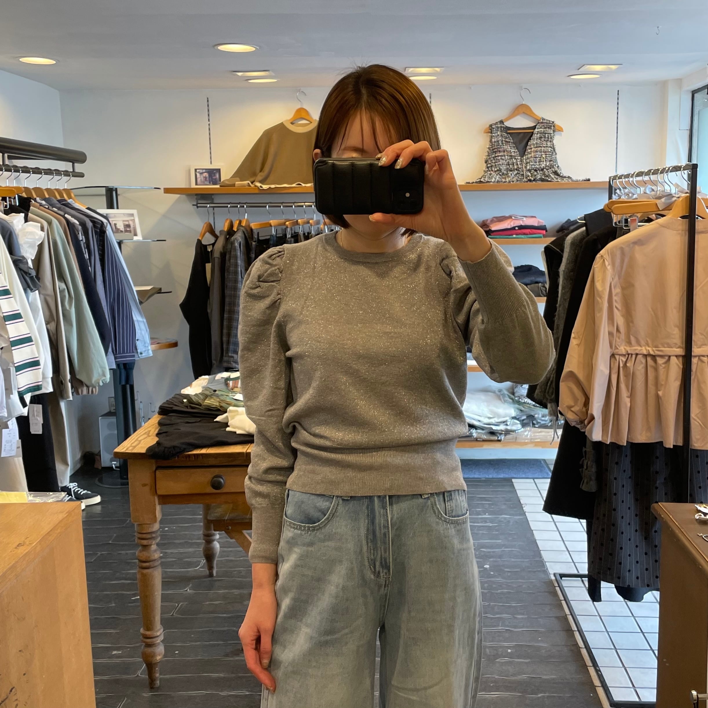 LADIES パフスリーブラメニット