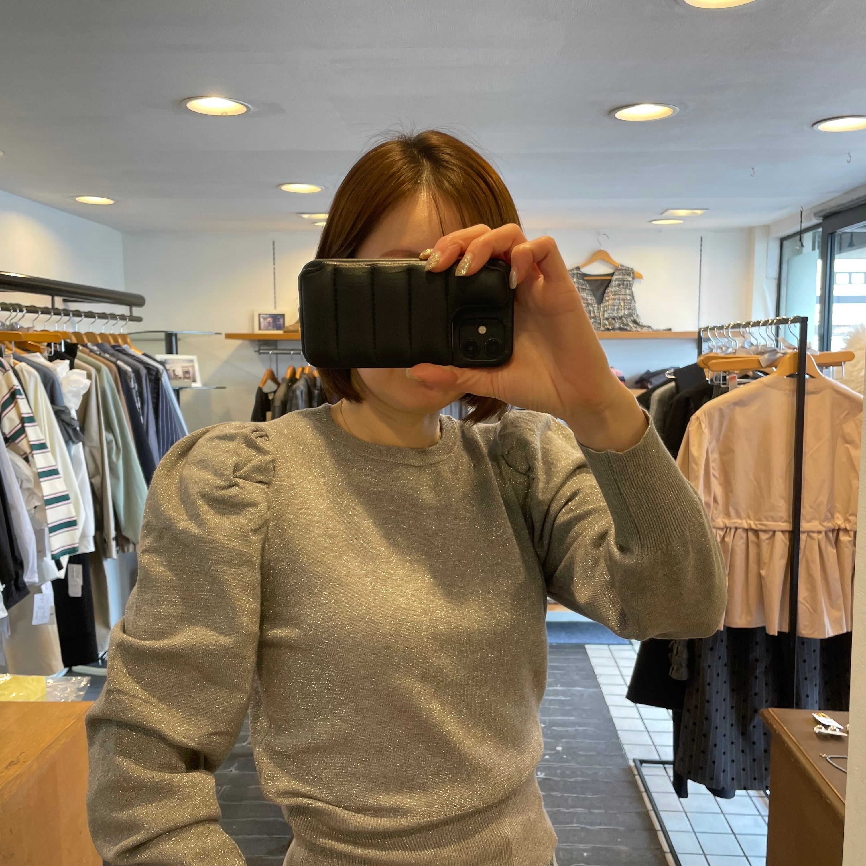 ラメ素材と、ふんわりとしたパフスリーブが特徴の一枚です。