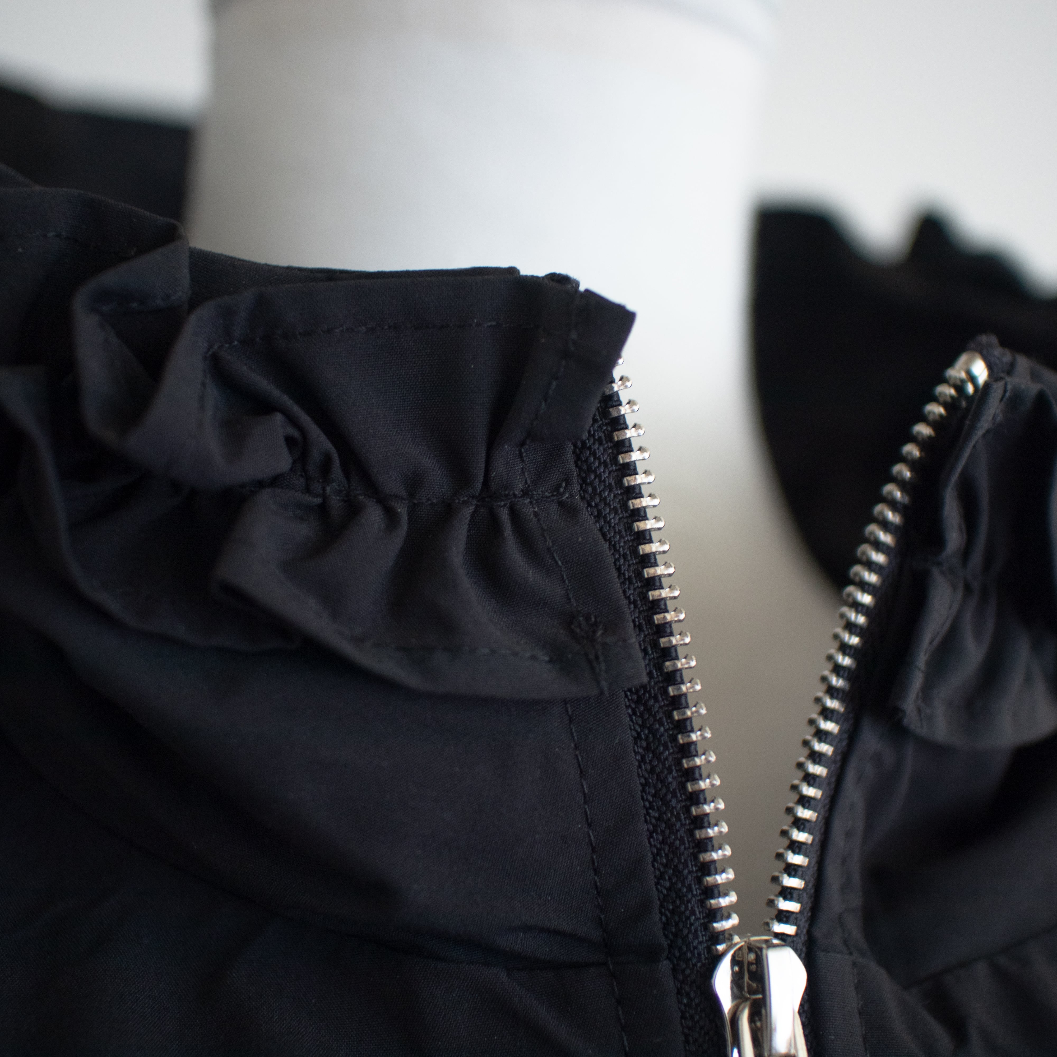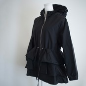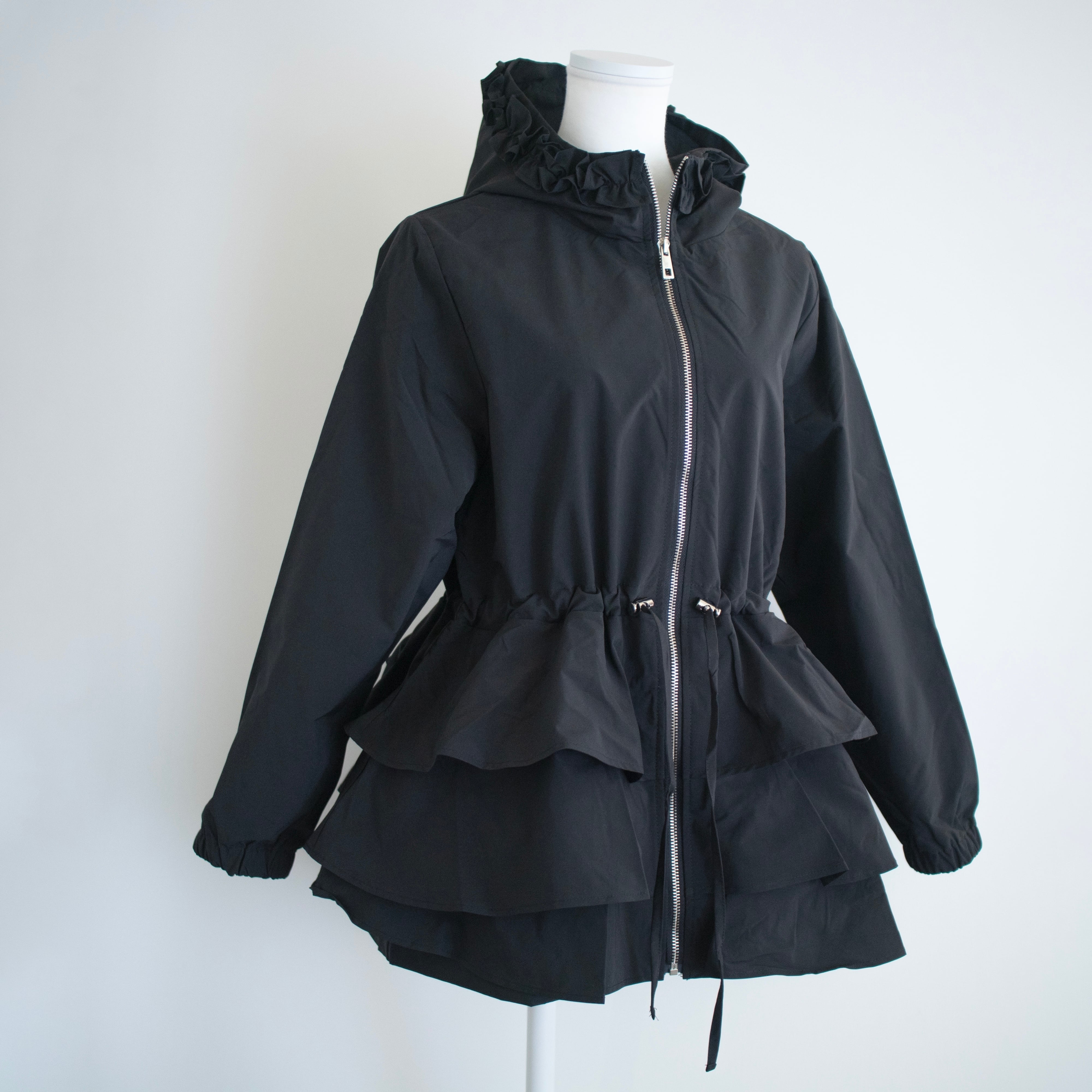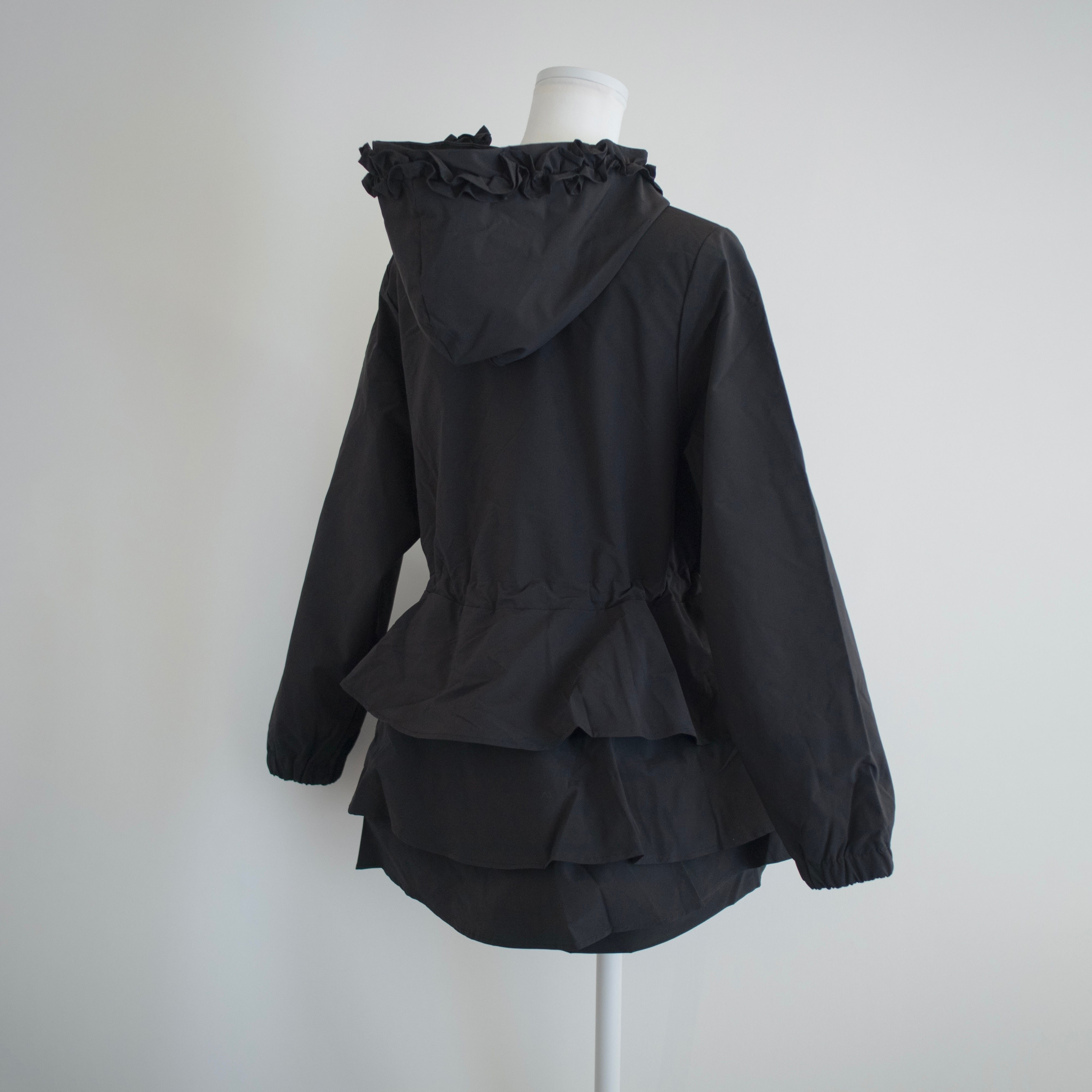 フリルデザインが特徴のフーディージャケットです。カジュアルスタイルにぴったりのアイテムでありながら、女性らしさを引き立てるデザインが魅力です。軽やかな素材感で動きやすく、デイリーコーデに最適です。 シルエットは、程よいゆとりを持たせたデザインで、リラックス感あふれる着心地を実現。フード部分にはフリルが施されており、ちょっとした可愛らしさをプラスします。