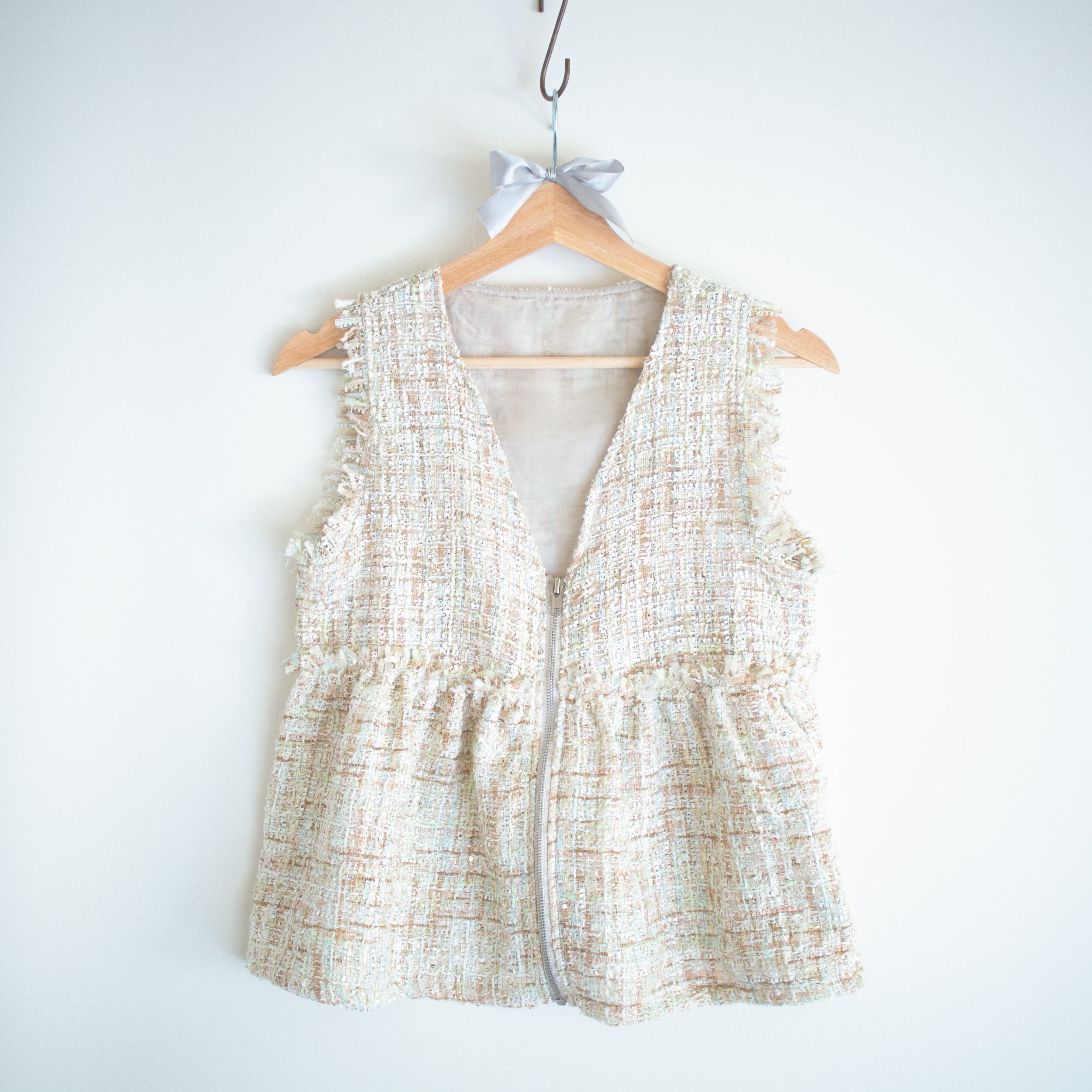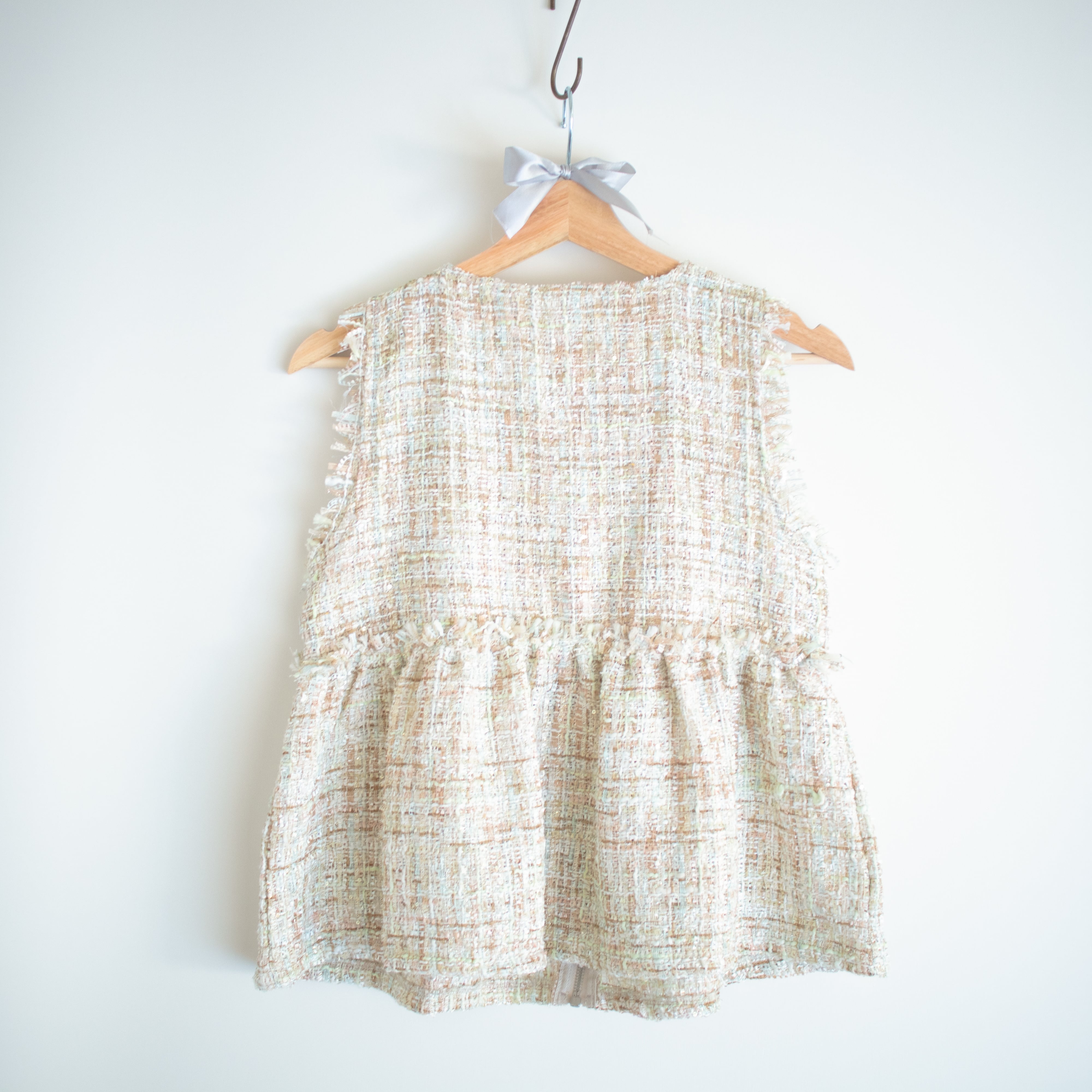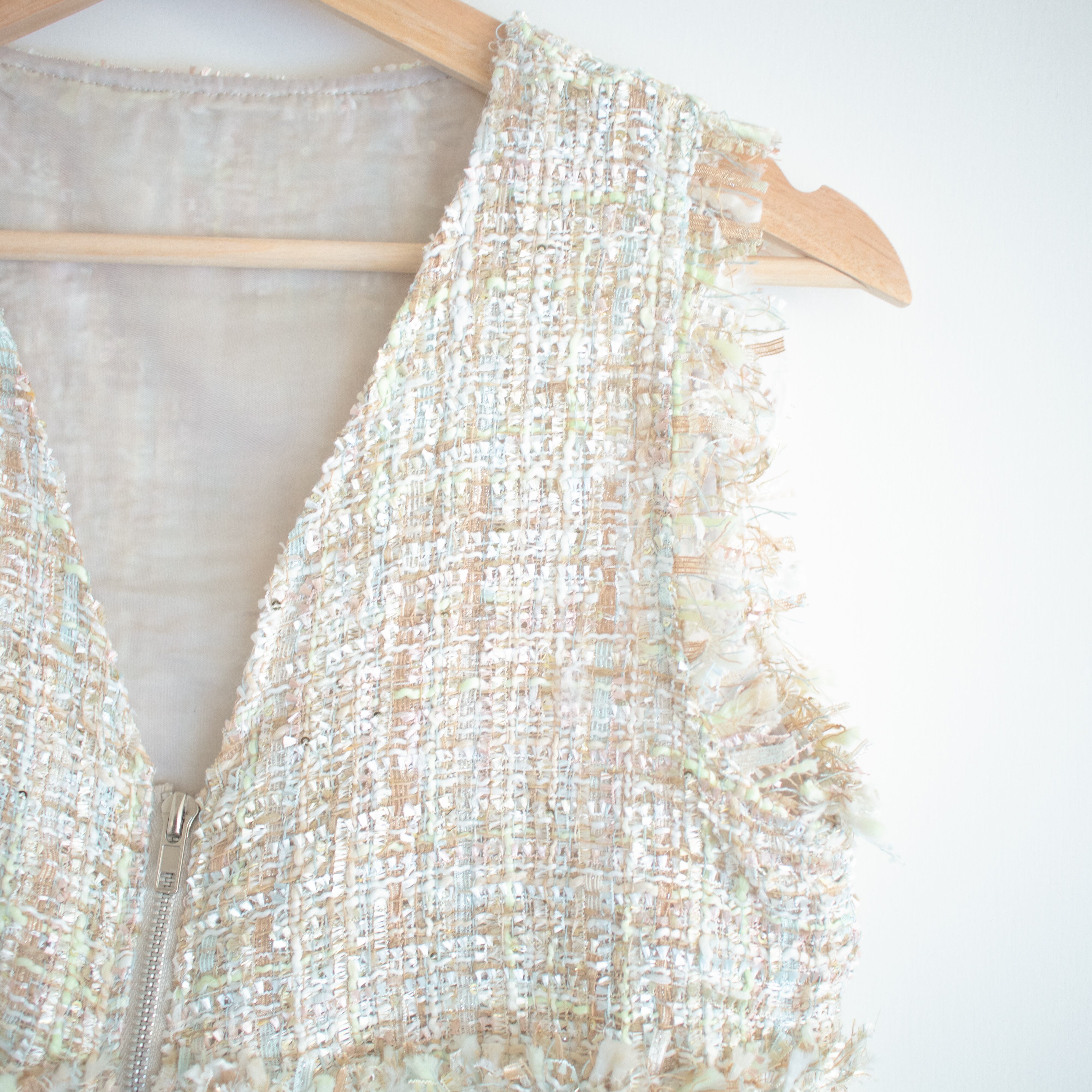 立体感のあるツイード素材に、フリンジディテールをあしらい、
