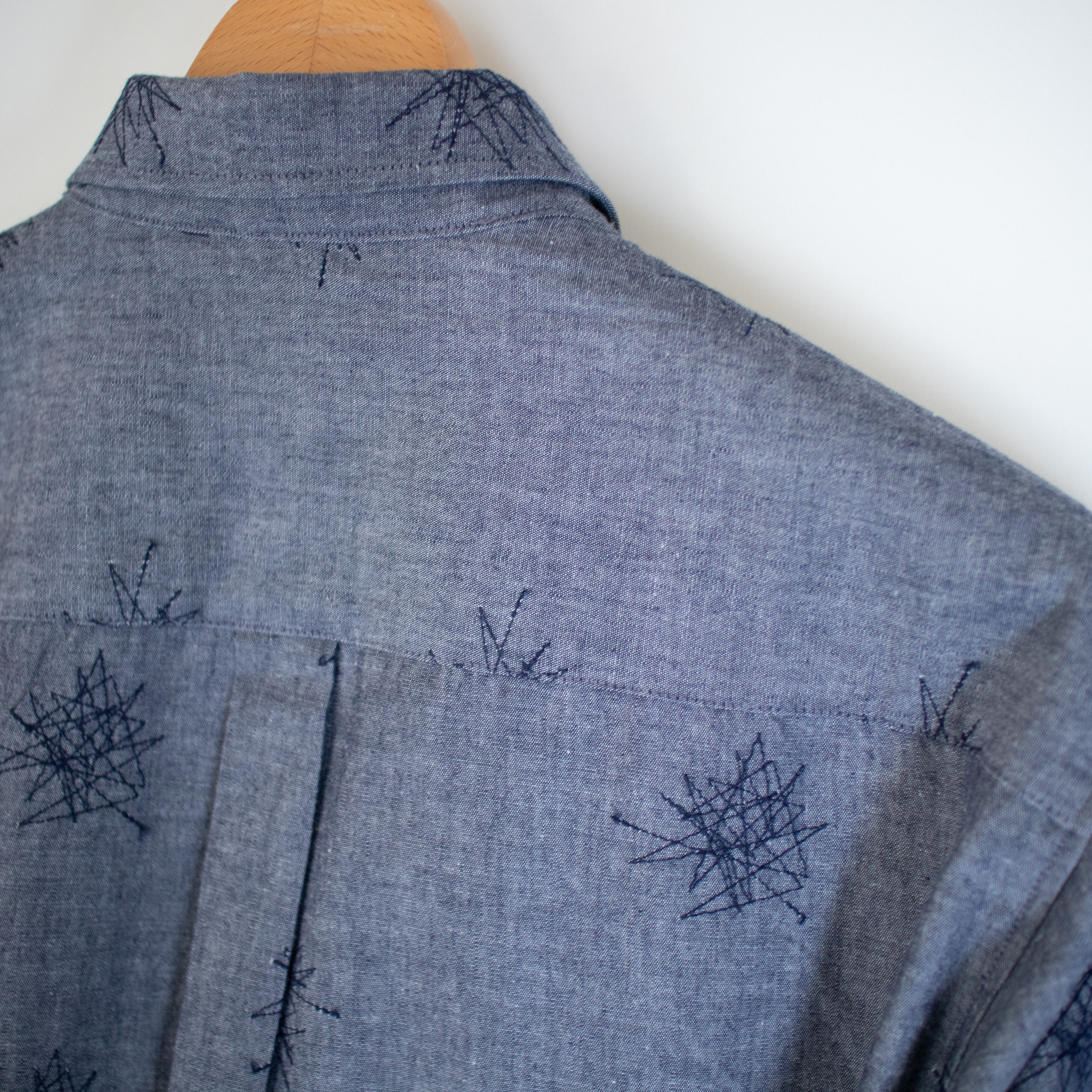 刺繍がアクセントになる大人なダンガリーシャツです。