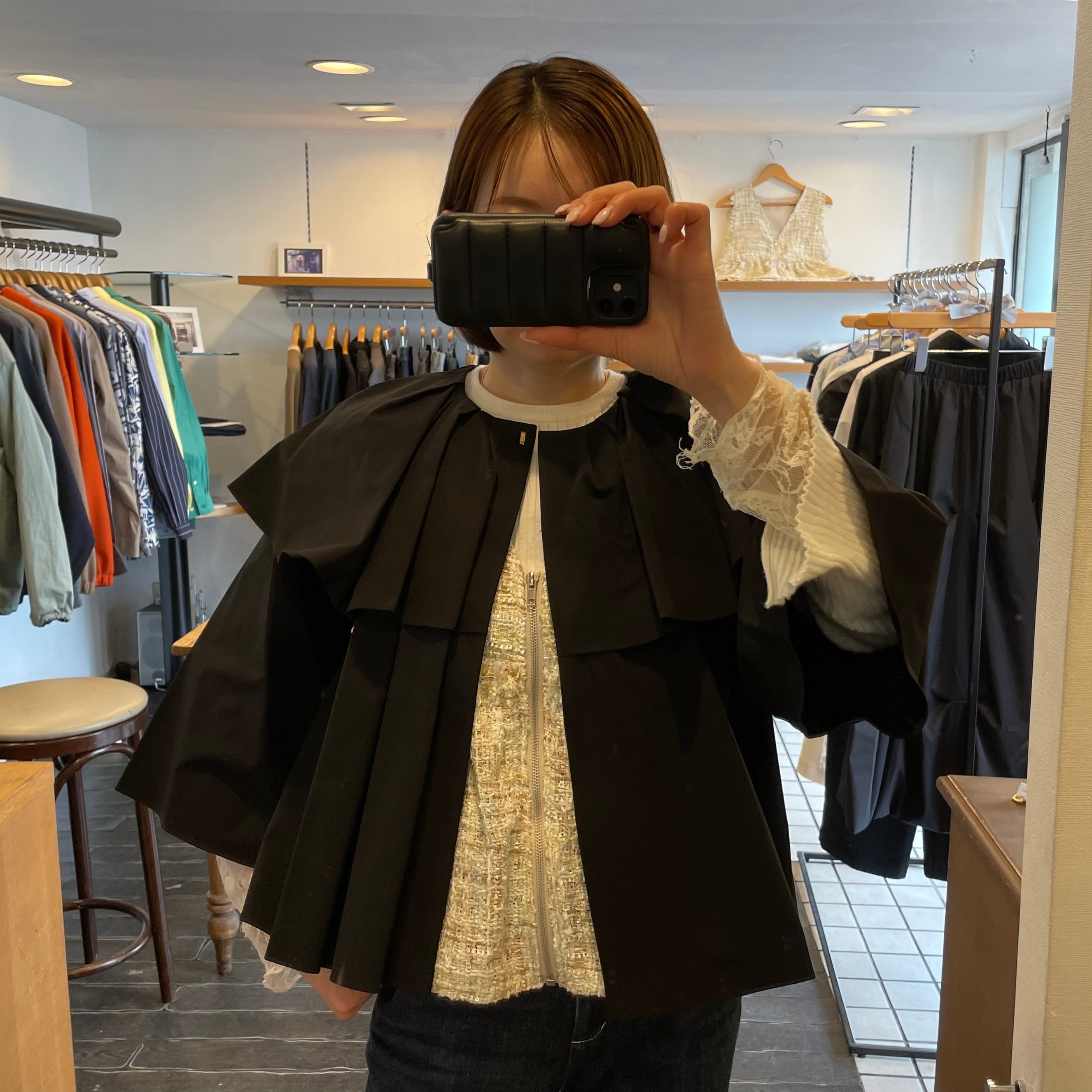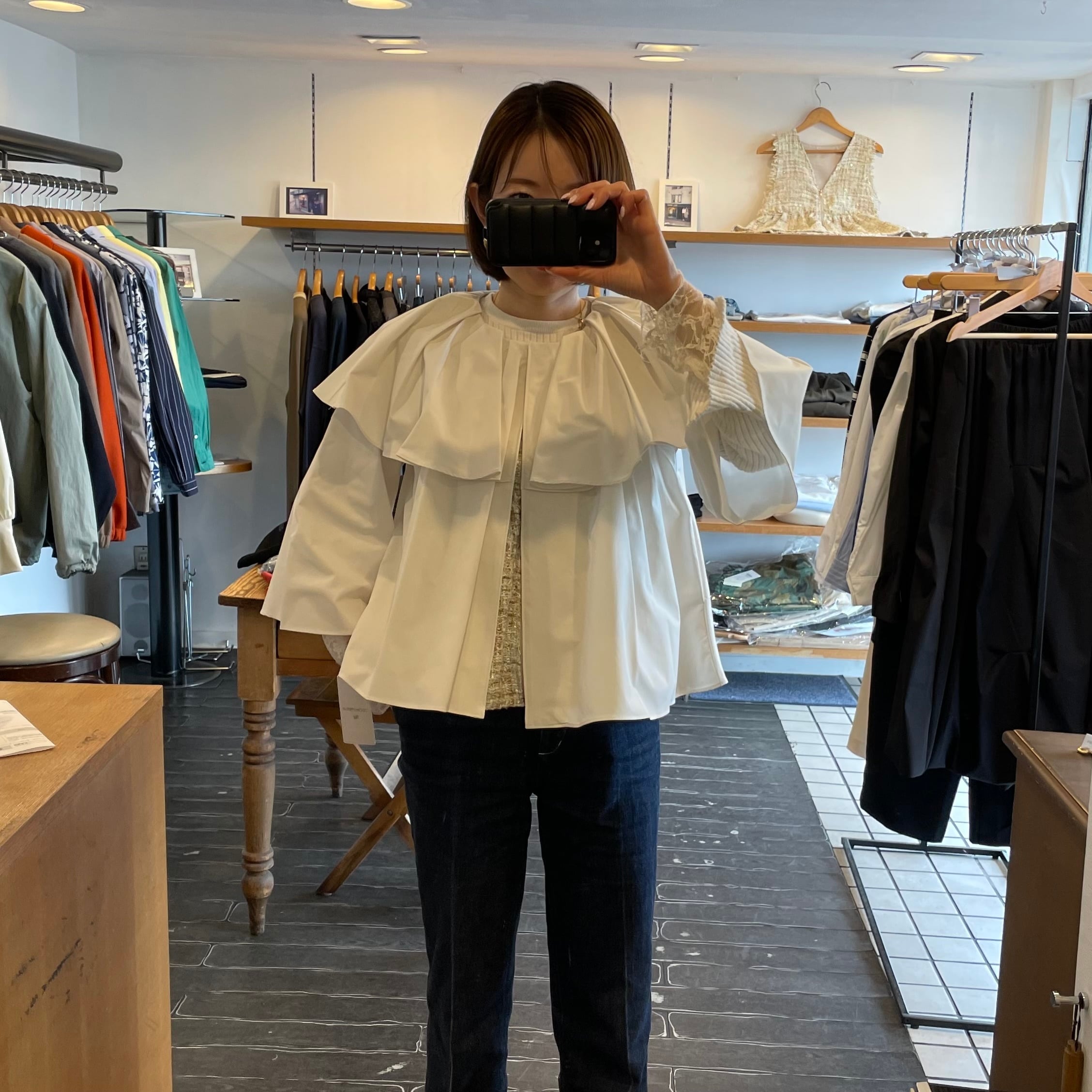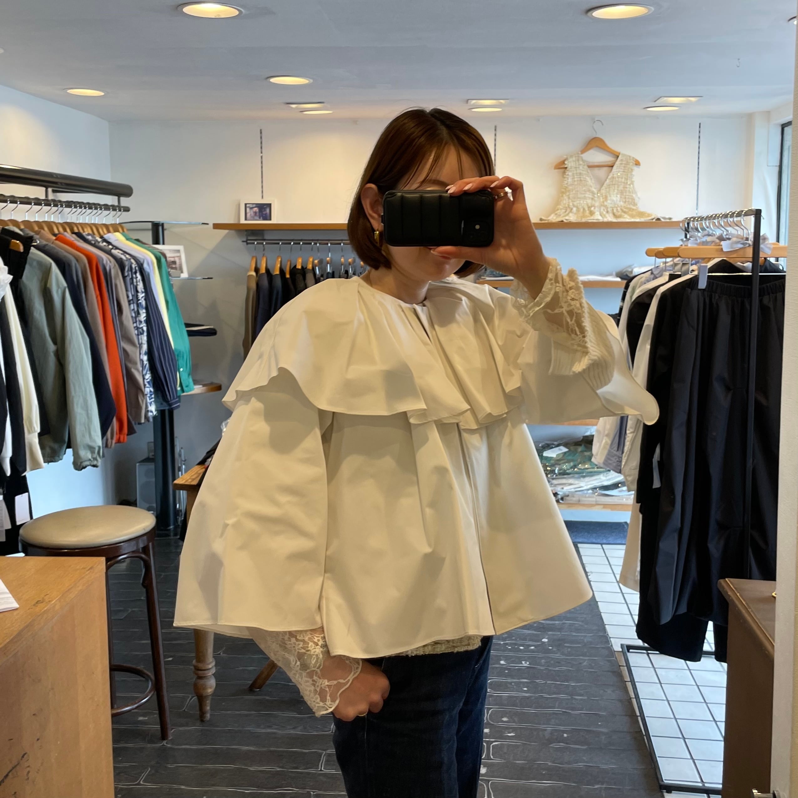 袖や身頃は緩やかに広がったシルエットで、ひらりと揺れるたびに女性らしさがふわっと香ります。