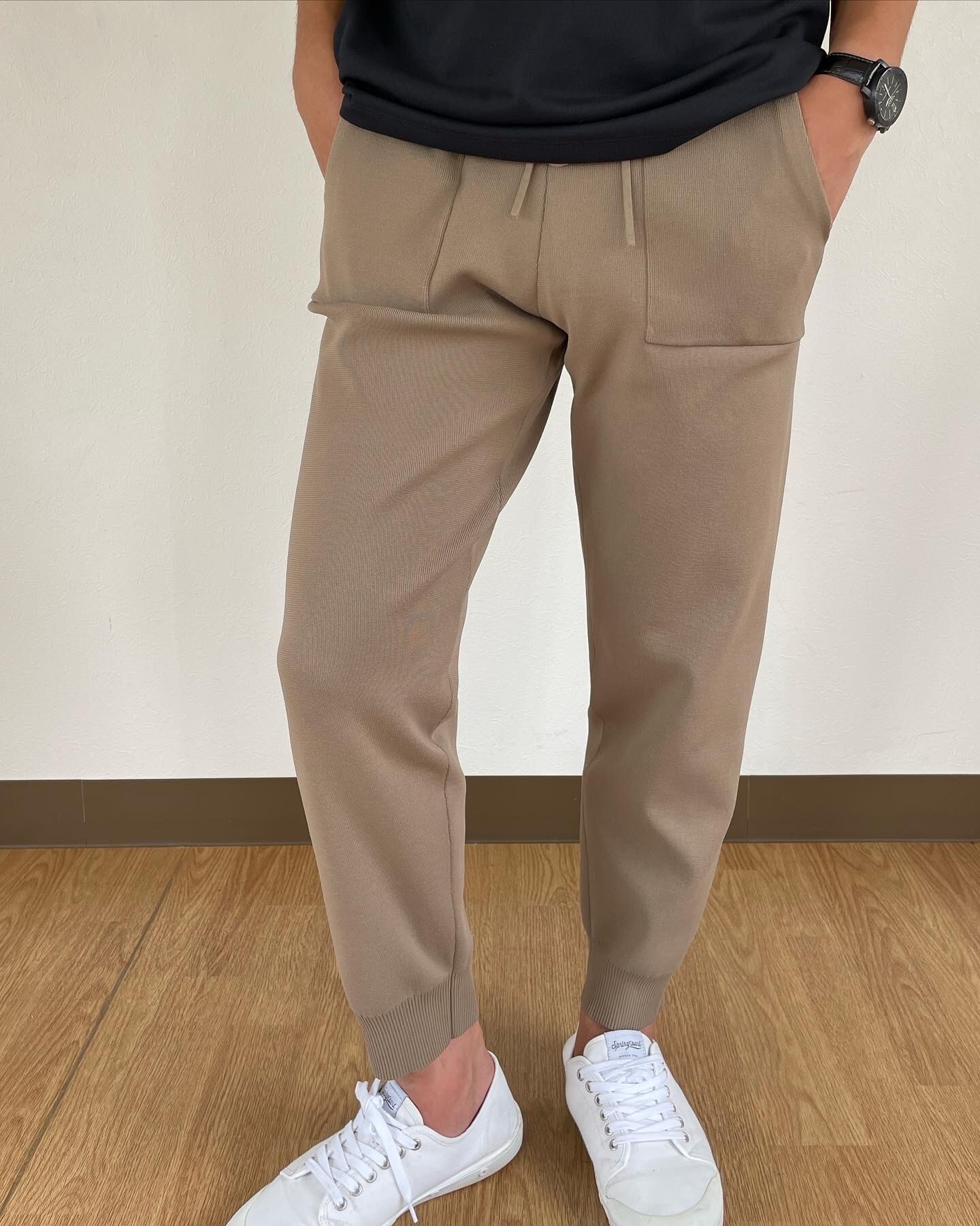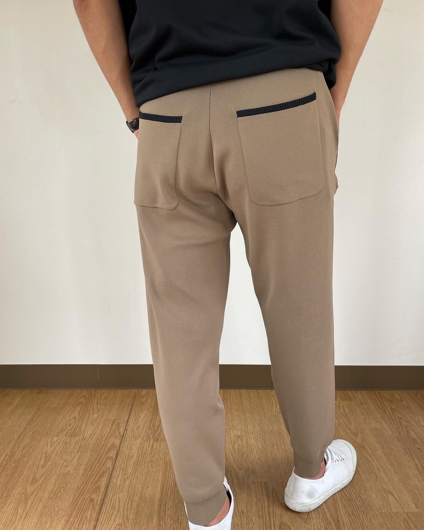 ラインが綺麗なニットジョガーパンツ。