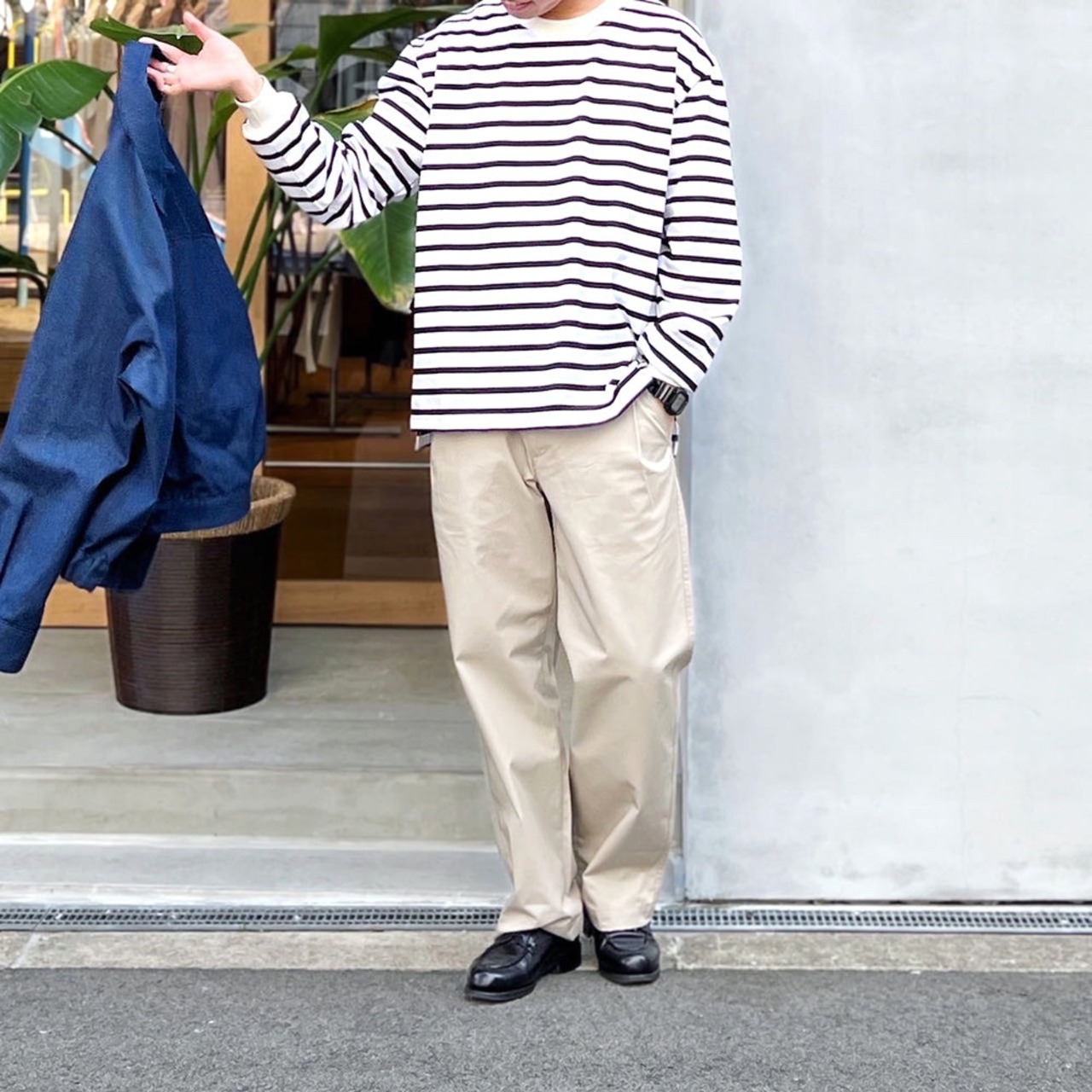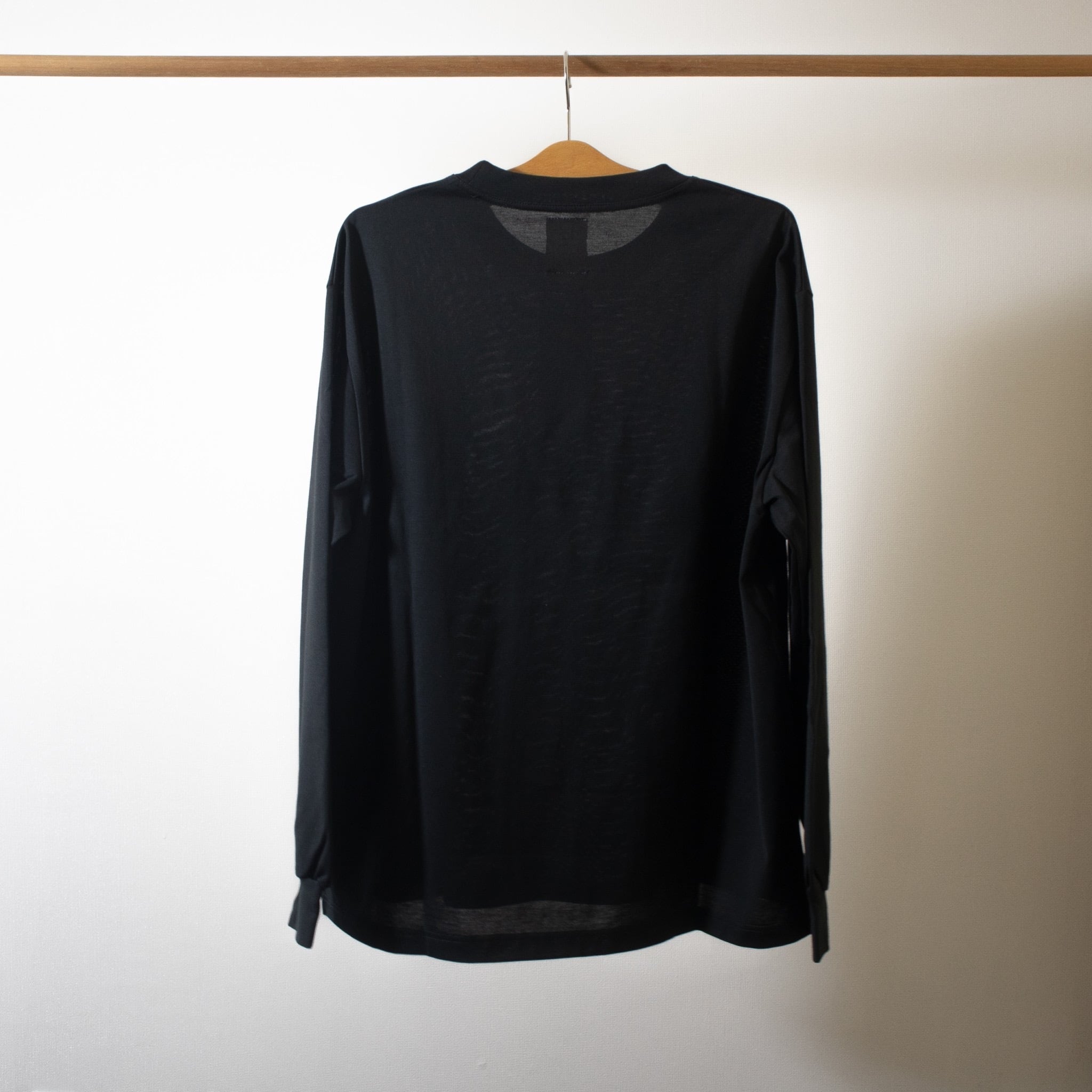 天竺ながら厚みのある肉感と美しい光沢感による上品な表情と、ゆったりしたサイジングが相まって大人のための主役ロンTとして活躍します。