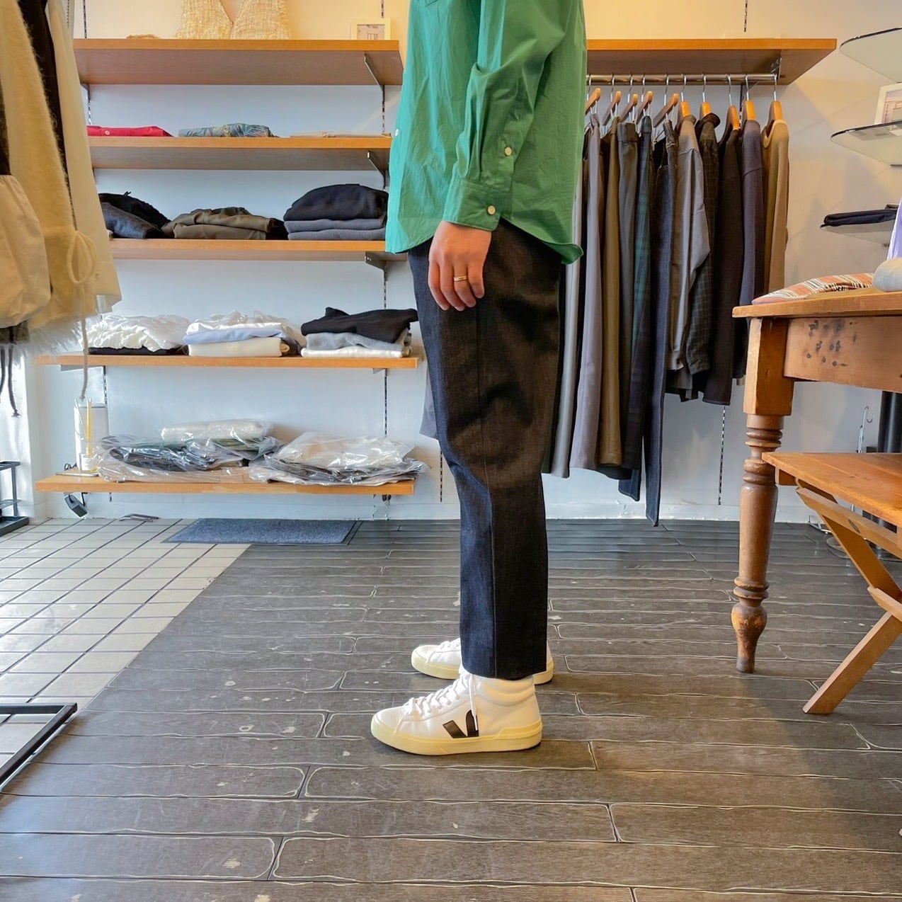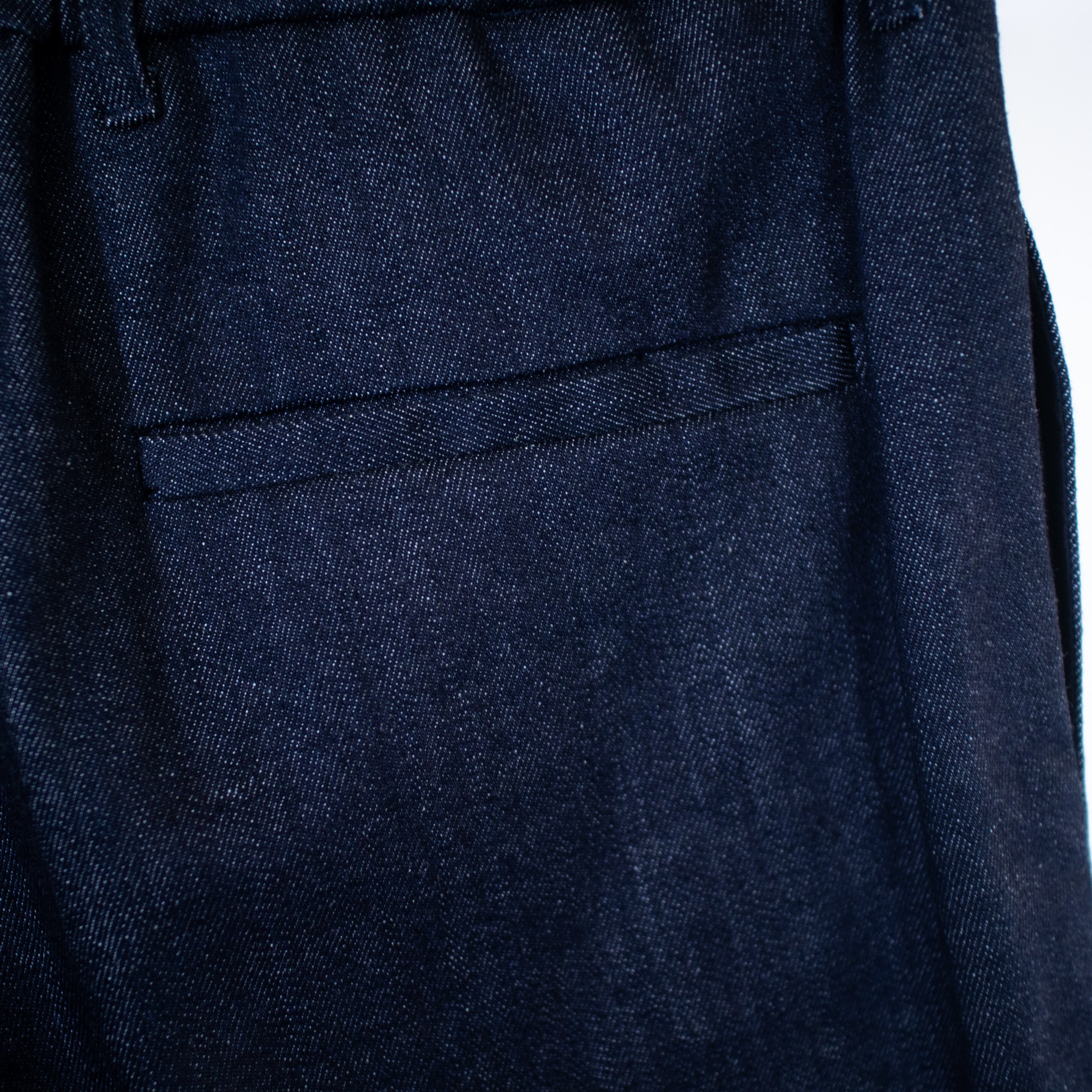 上品で綺麗めな目面のデニムに仕上げた、程よくムラ織りする事で表情のある雰囲気 。