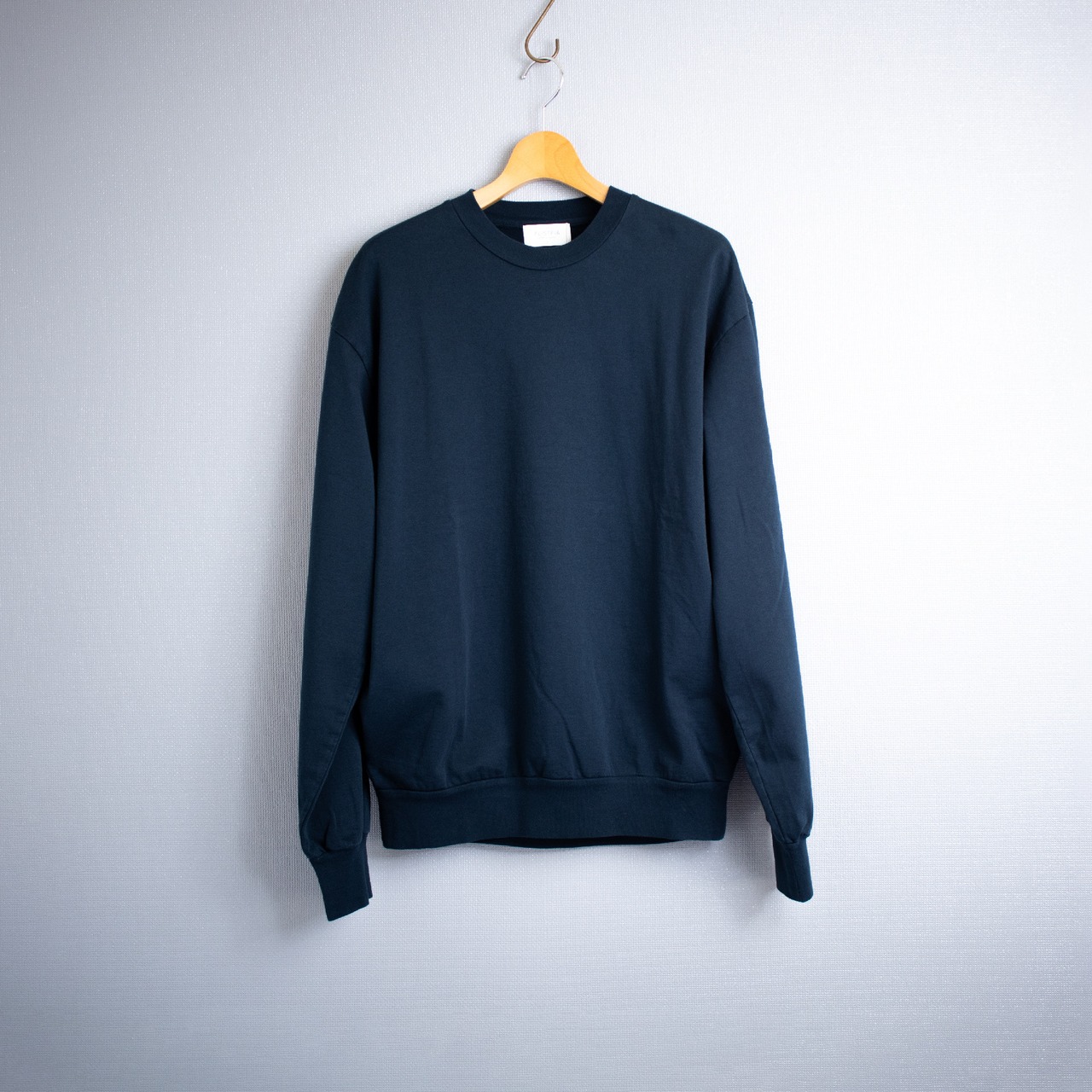 上質な素材感を生かす為にハイゲージに編み立てた綺麗な目面が特徴的な一枚。