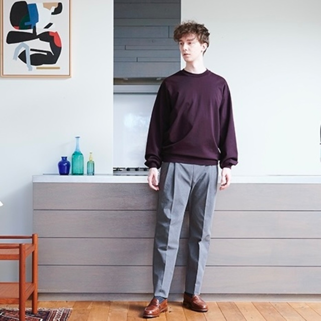 着丈はスッキリとし、肩や袖などを特に大きめにしたルーズシルエットで、