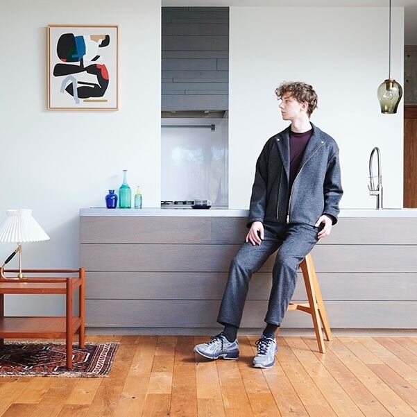 同素材のライダースワイドジャケットとセットアップでの着用も素敵です。