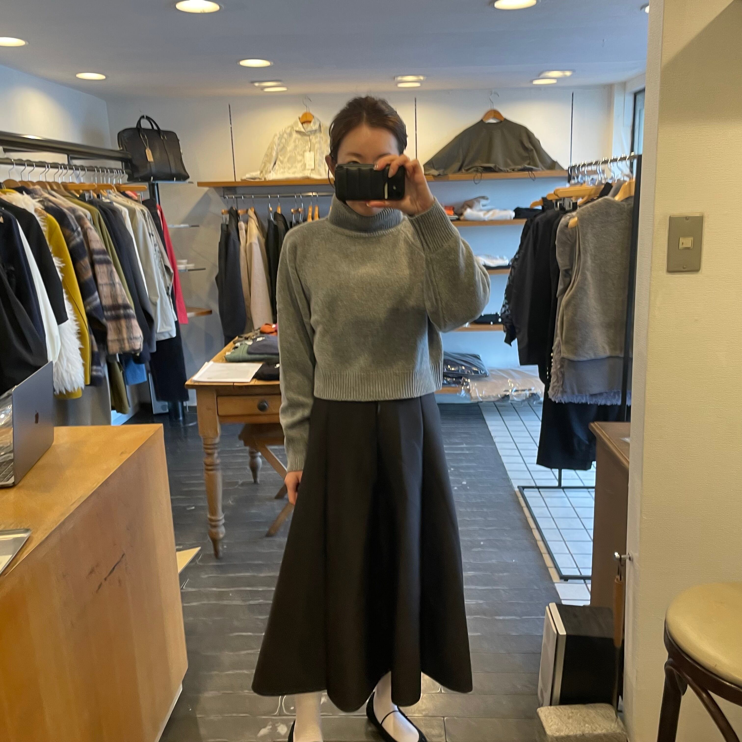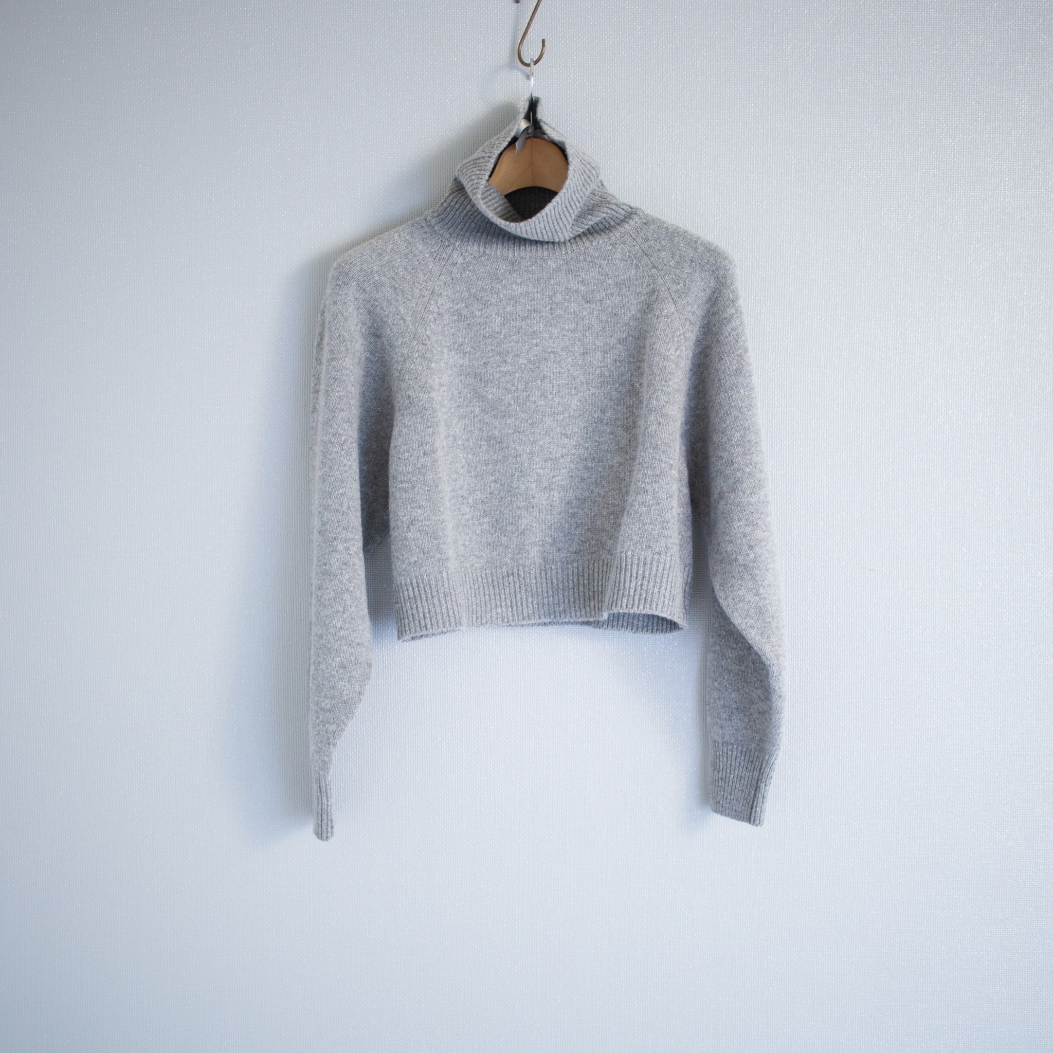 ウール100%クロップド丈のハイネックニットです。