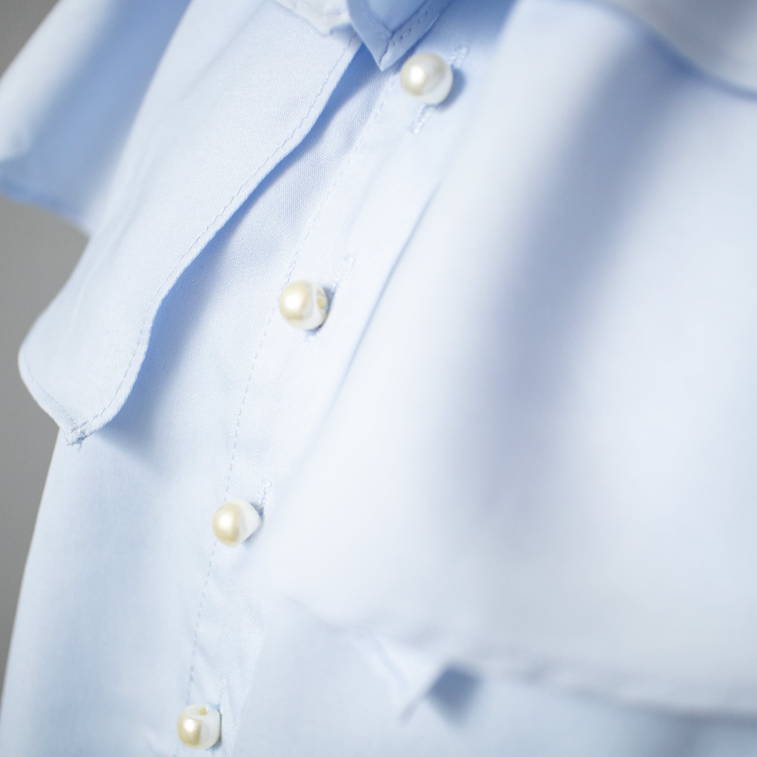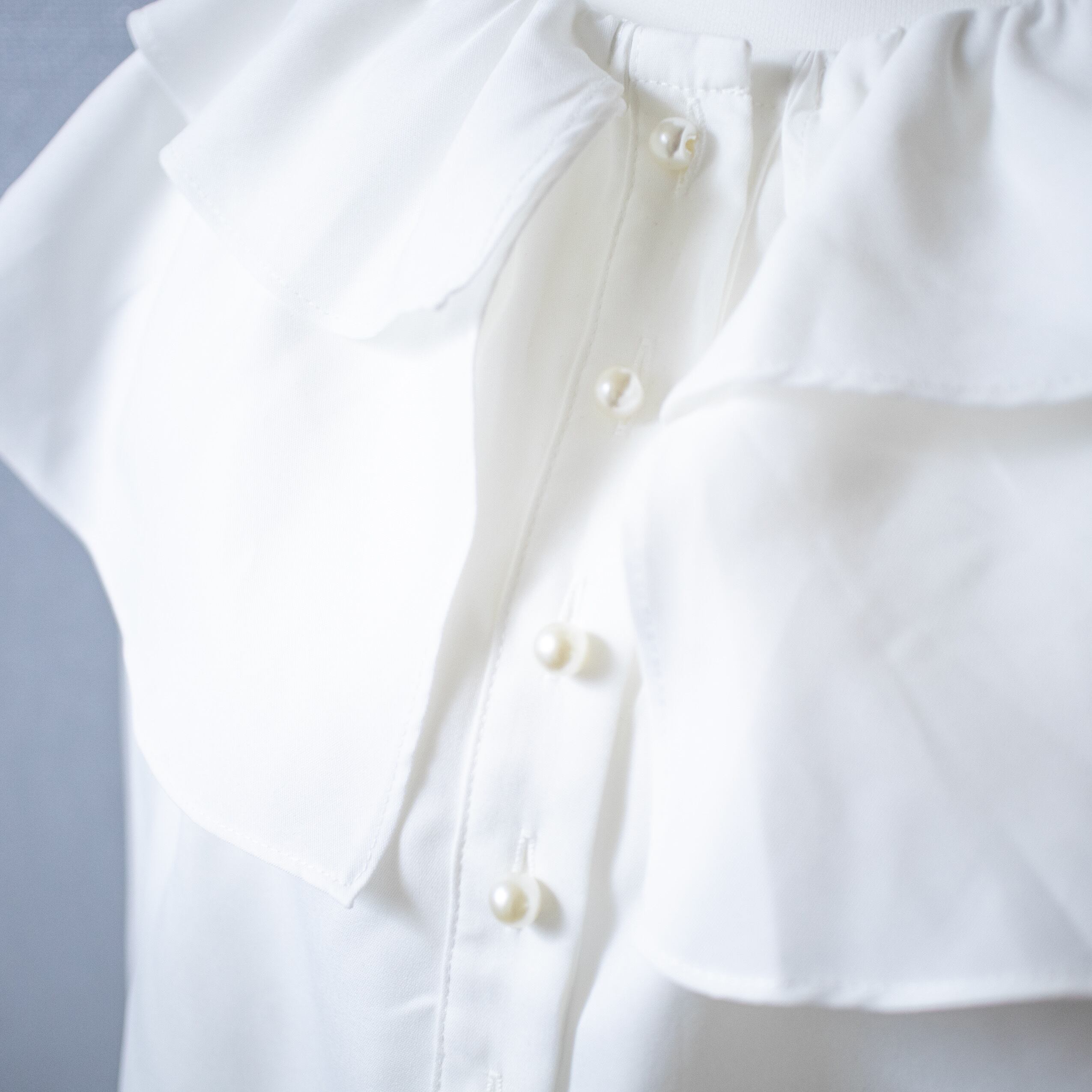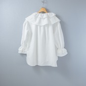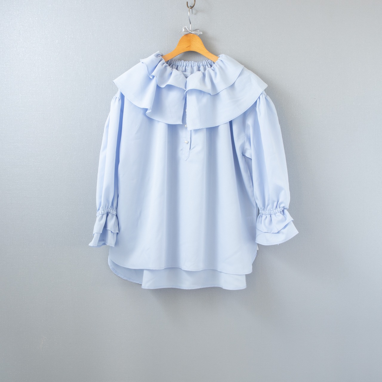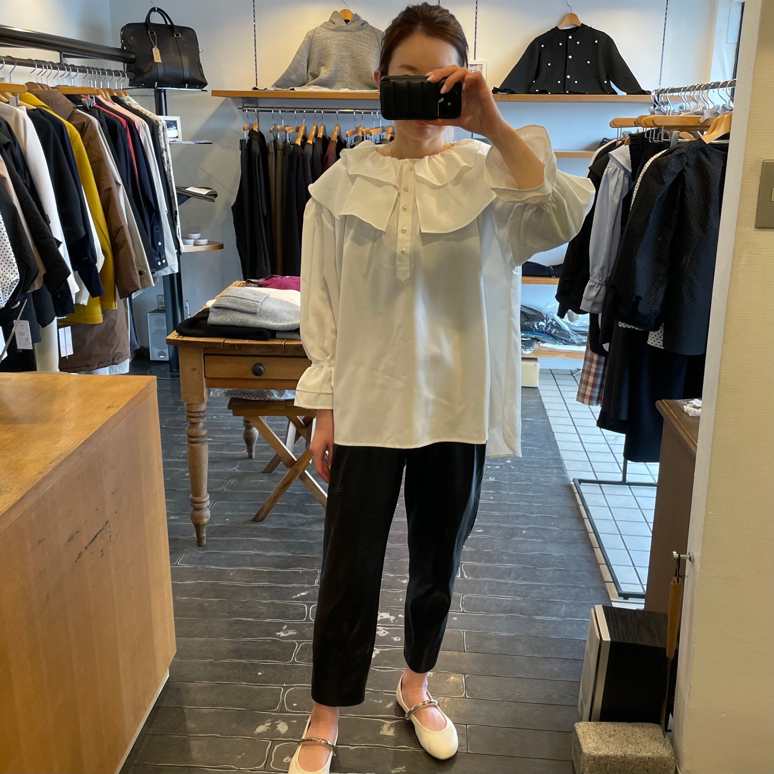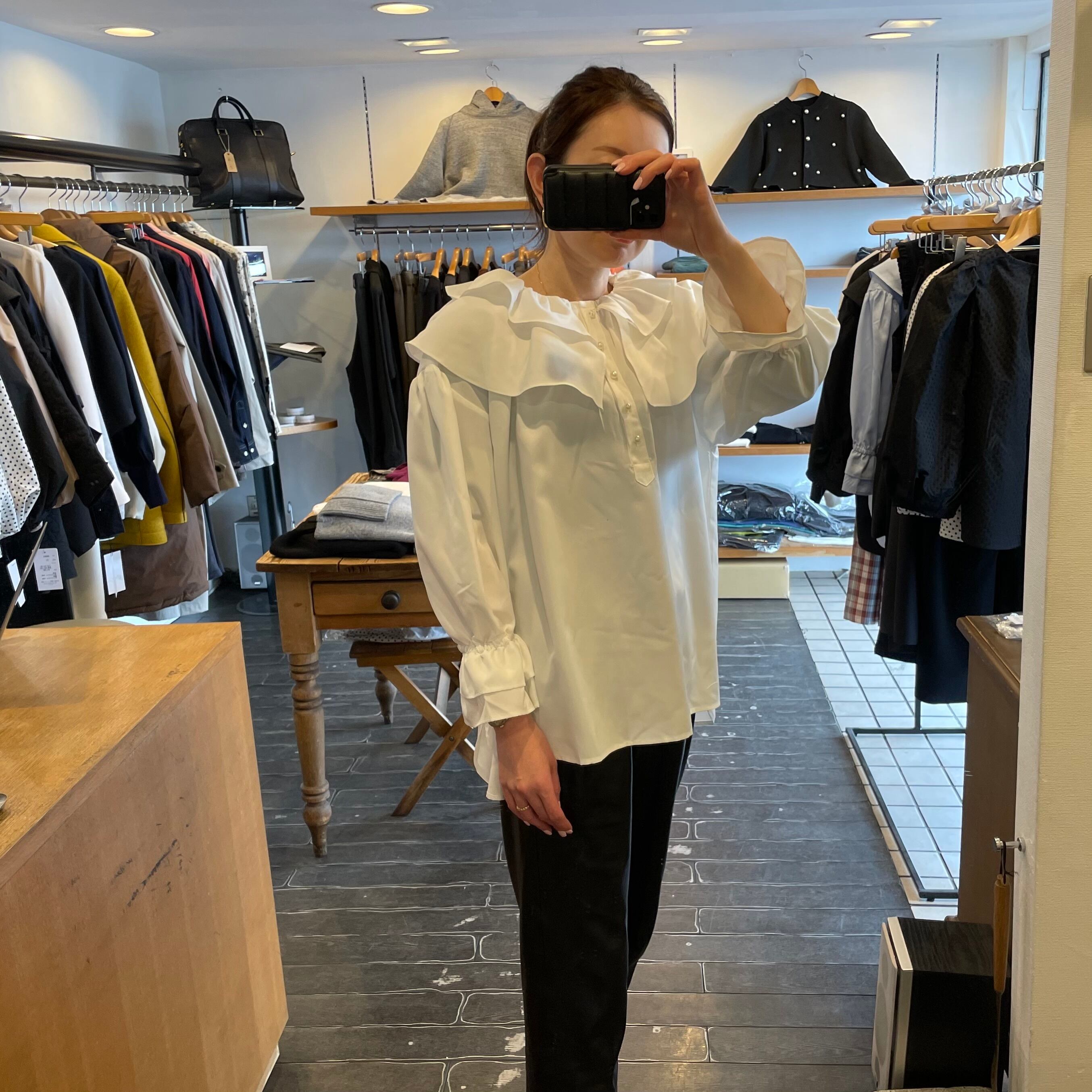 華やかなダブルフリルカラーが印象的なブラウス。ボリューム感のある襟元が顔周りを明るく引き立て、コーディネートの主役になる一着です。柔らかな素材感とゆとりのあるシルエット。パンツスタイルでシャープに、スカートと合わせてフェミニンに仕上げるなど、さまざまなスタイリングが楽しめます。特別なシーンからデイリーまで幅広く活躍するアイテムです。